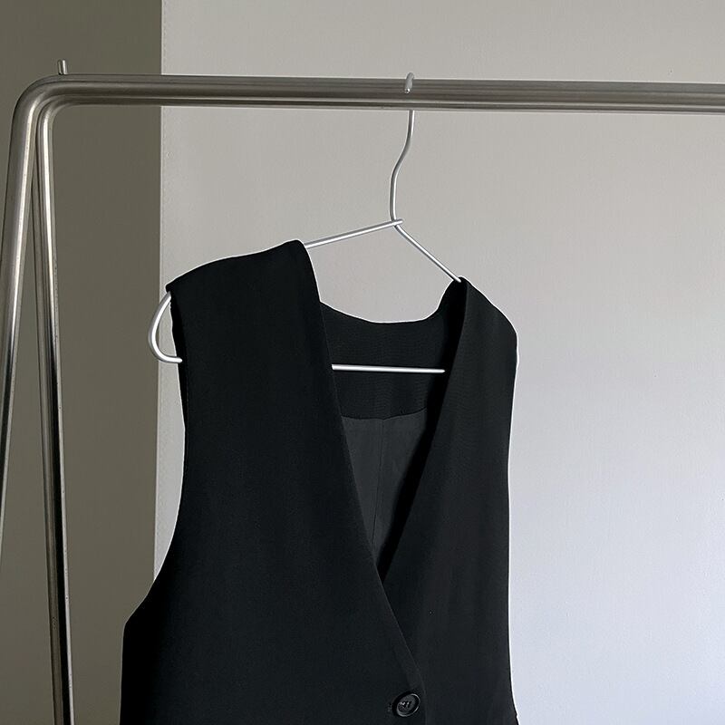 ブラックの引き締めカラーによって甘くなりすぎずスタイリッシュに着こなせます。