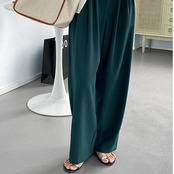 流行りのワイドパンツに上品なドレープを効かせた一着。