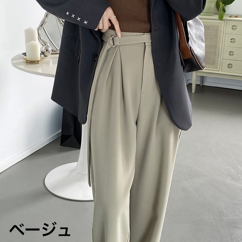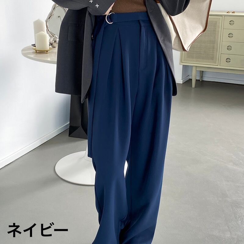 パンツ レディース ワイドパンツ ロング丈 無地 秋 冬 スリム ストレート Iライン ベルト かわいい 大人可愛い きれいめ シンプル カジュアル 大人 上品 おしゃれ お洒落 かっこいい レトロ 大人可愛い 大人女子 ラフ メンズライク マニッシュ ベージュ ネイビー くすみカラー M L 20代 30代 オフィス ビジネス OL 通勤 学生 通学 デート お出かけ 女子会 休日 旅行 着回し 普段使い 韓国 韓国系 コーデ スタイル モテ 新作 定番 送料無料 トレンド 流行 インスタ映え | Rena 韓国ファッション レディースアパレル
