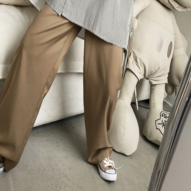 話題のビッグシルエットを演出するマニッシュなワイドパンツ。