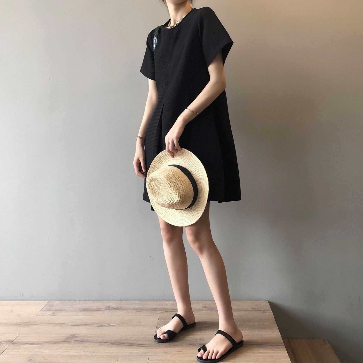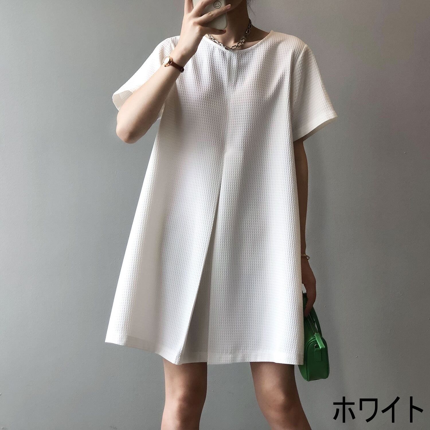 ワッフル地が愛らしいフェミニンなテントラインワンピース。
