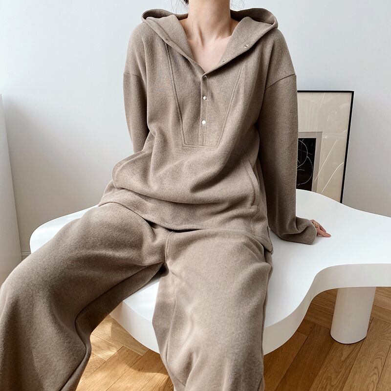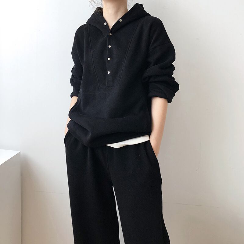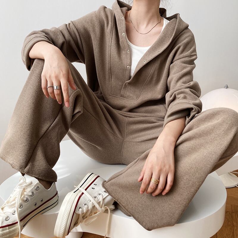 セットアップ パーカー ストレートパンツ 長袖 無地 秋 冬 フード付き ポケット ウエストゴム 大人可愛い シンプル カジュアル 大人 上品 おしゃれ お洒落 かっこいい 大人女子 ラフ クール 存在感 袖あり スウェット 部屋着 寝巻き 上下セット 2点セット 黒 ブラック 茶色 ブラウン M L ゆったり 10代 20代 30代 40代 女性用 ママ お泊まり 休日 旅行 普段使い 送料無料 | Rena 韓国ファッション レディースアパレル