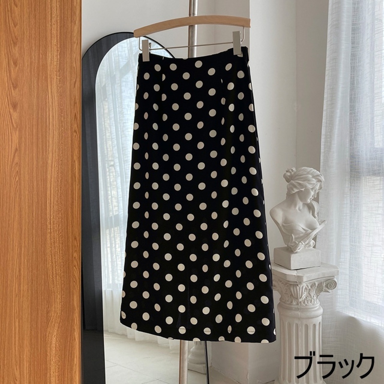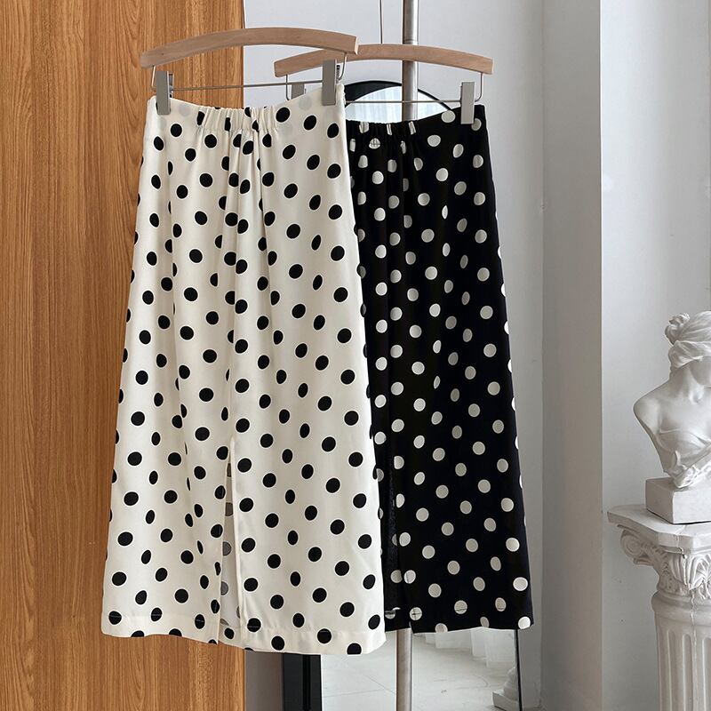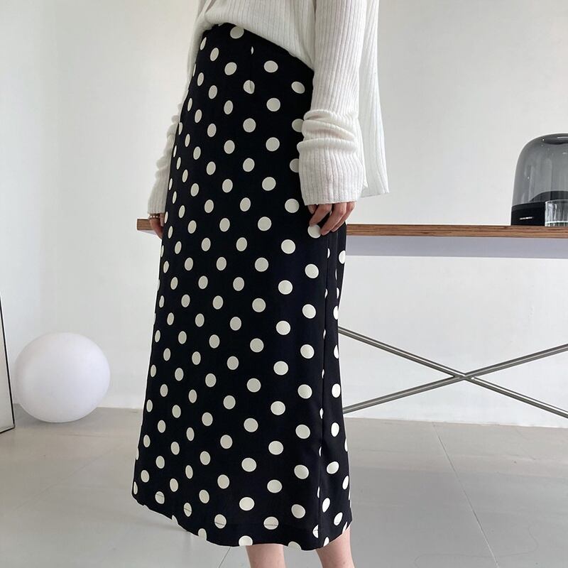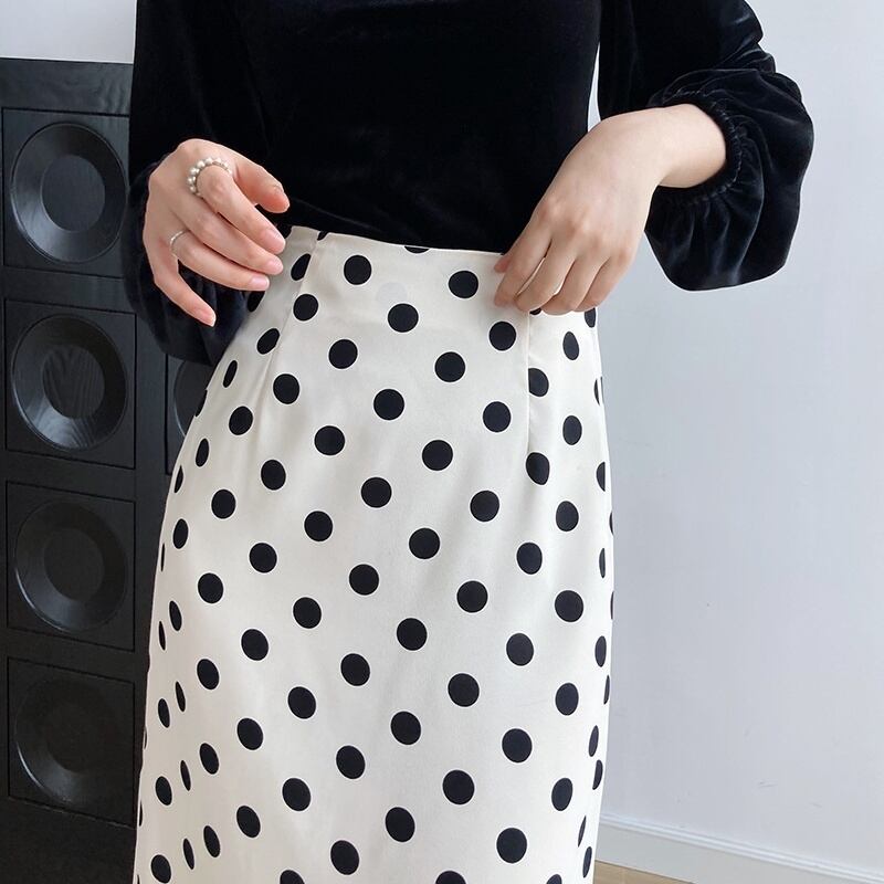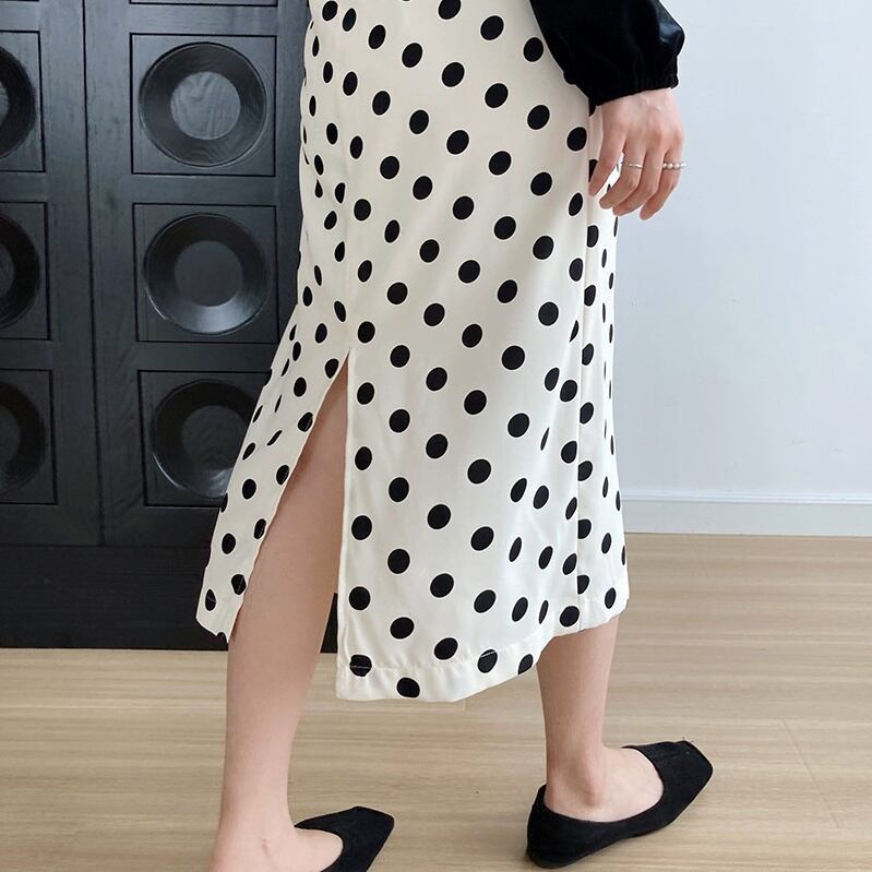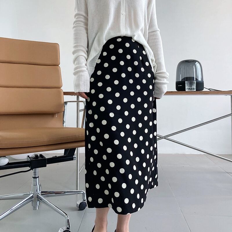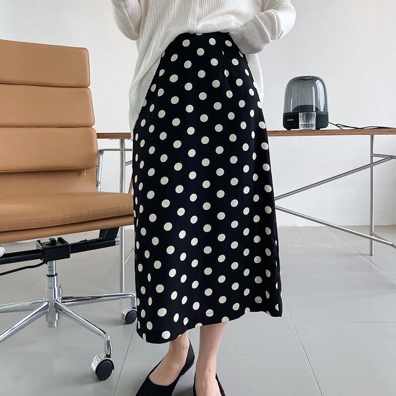 スカート Aラインスカート ミディアム丈 ドット 水玉 秋 スリット バックスリット かわいい 大人可愛い きれいめ カジュアル 大人 上品 おしゃれ お洒落 大人女子 キュート ガーリー エレガント 主役級 存在感 白 ホワイト 黒 ブラック M L 10代 20代 30代 女性用 OL 通勤 学生 通学 デート お出かけ 公園デビュー 女子会 休日 着回し 普段使い ファッション コーデ モテ 送料無料 インスタ映え | Rena 韓国ファッション レディースアパレル