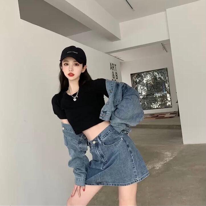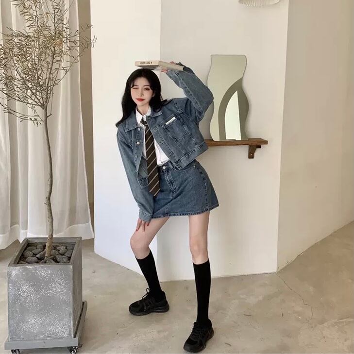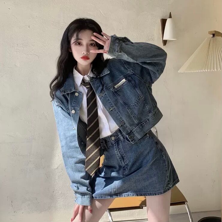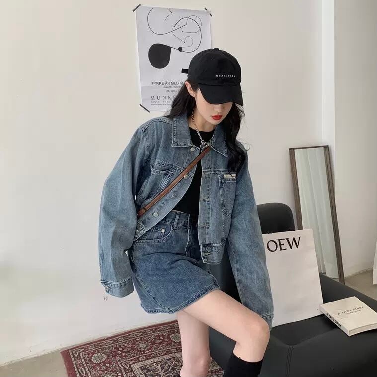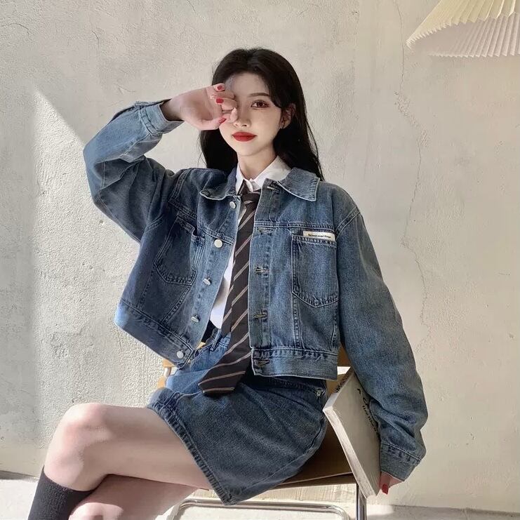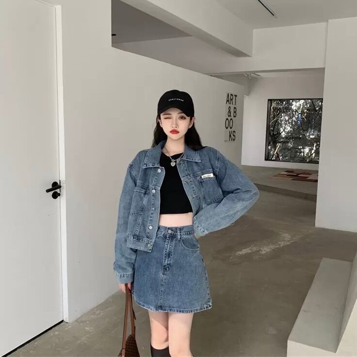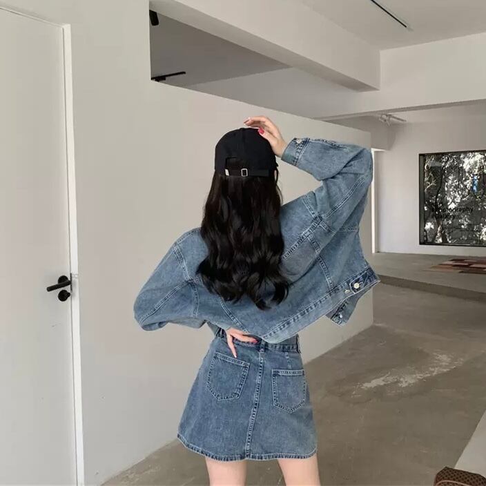 レディース スカート ボトムス アウター セットアップ Gジャン ショート ショート丈 袖あり 長袖 Vネック 襟付き Aライン ポケット ハイウエスト 前開き デニム 上下セット 2点セット ツーピース お得 大人可愛い カジュアル 大人 おしゃれ かっこいい 大人女子 ルーズ クール L XL 2XL 3XL 4XL 青 ブルー 無地 秋 冬 2021 10代 20代 女性用 ママ 学生 通学 デート お出かけ 女子会 休日 韓国系 オルチャン 新作 送料無料 | Rena 韓国ファッション レディースアパレル