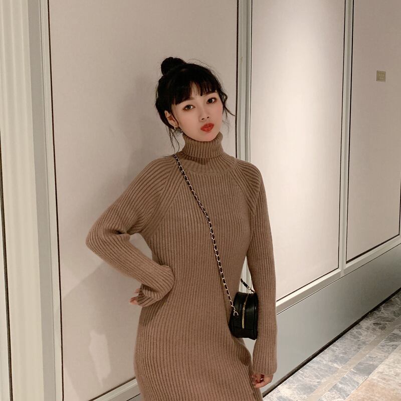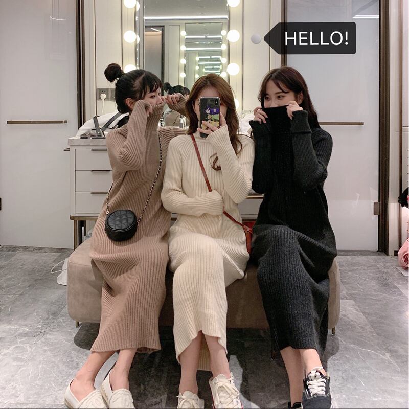 ワンピース ロング丈 長袖 無地 秋 冬 タイト かわいい 大人可愛い きれいめ シンプル カジュアル 大人 上品 おしゃれ 大人女子 こなれ感 ラブリー キュート ガーリー ハイネック ロング 袖あり ニット ブラック 大人カラー キャメル アプリコット M L XL 2XL 3XL 4XL 10代 20代 30代 40代 50代 60代 オフィス ビジネス OL 通勤 学生 通学 デート お出かけ 女子会 休日 旅行 着回し 普段使い ファッション コーデ スタイル モテ 送料無料 | Rena 韓国ファッション レディースアパレル