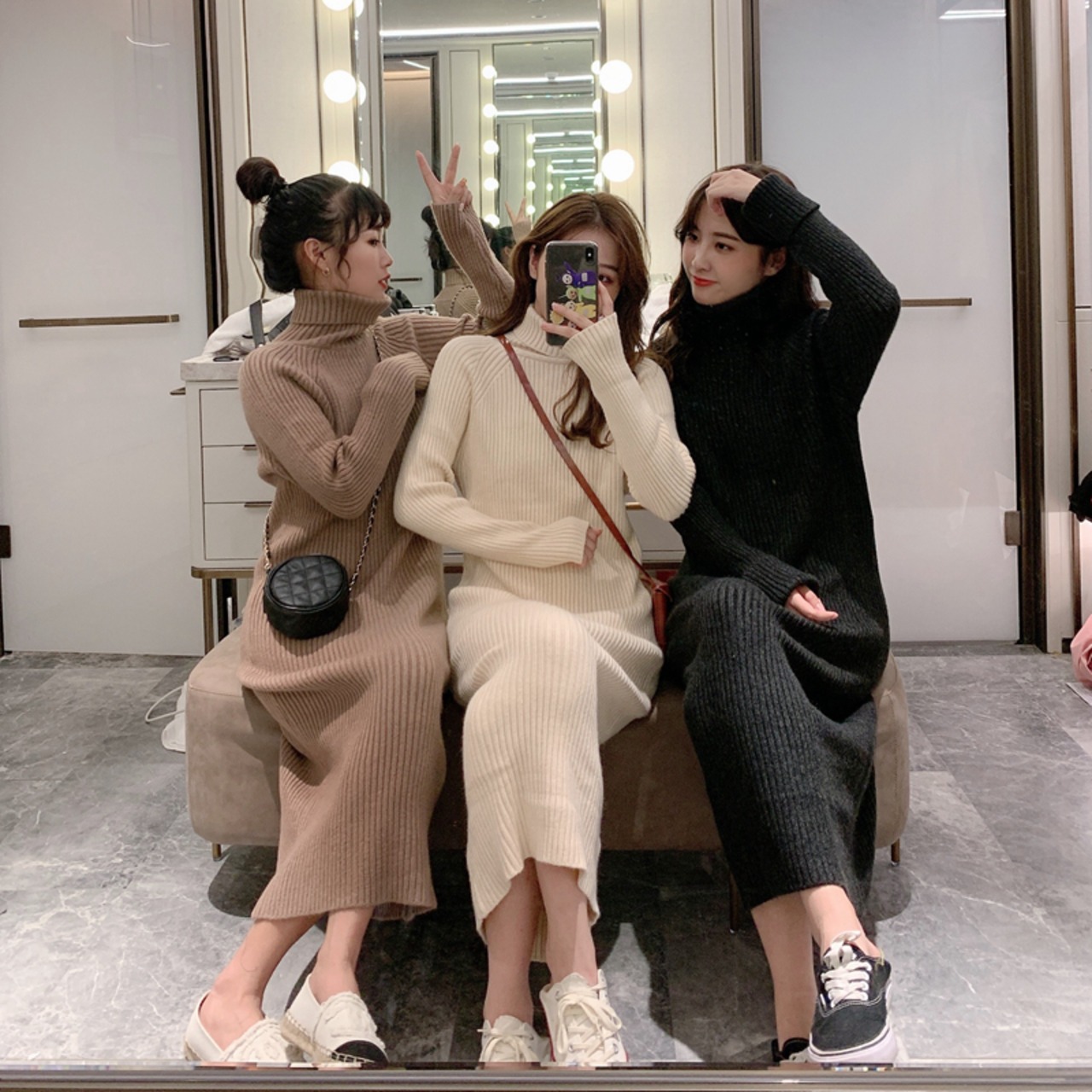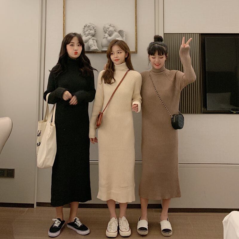 ワンピース ロング丈 長袖 無地 秋 冬 タイト かわいい 大人可愛い きれいめ シンプル カジュアル 大人 上品 おしゃれ 大人女子 こなれ感 ラブリー キュート ガーリー ハイネック ロング 袖あり ニット ブラック 大人カラー キャメル アプリコット M L XL 2XL 3XL 4XL 10代 20代 30代 40代 50代 60代 オフィス ビジネス OL 通勤 学生 通学 デート お出かけ 女子会 休日 旅行 着回し 普段使い ファッション コーデ スタイル モテ 送料無料