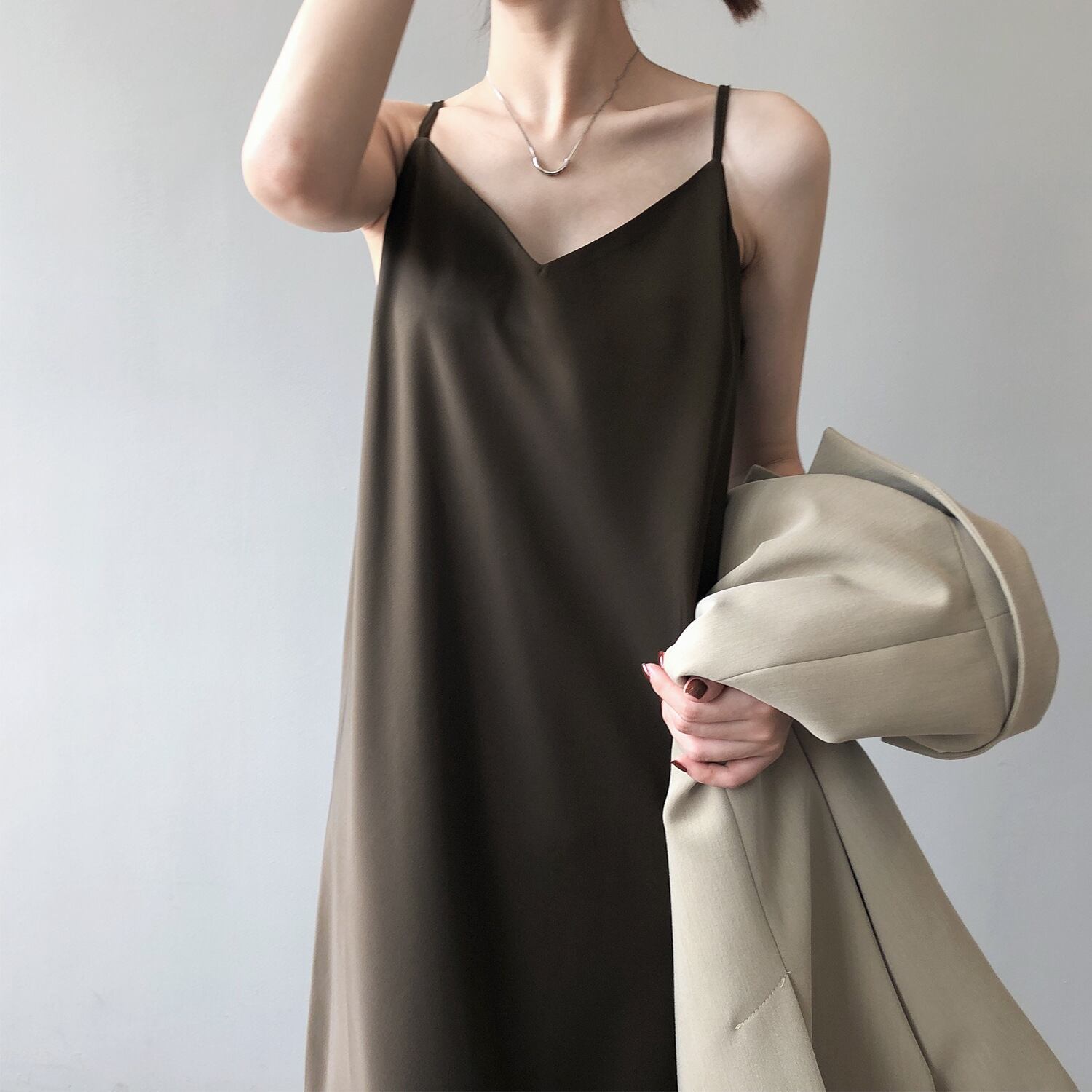 ワンピース ロング丈 ノースリーブ 無地 春 夏 秋 Iライン かわいい 大人可愛い きれいめ シンプル カジュアル 大人 上品 おしゃれ かっこいい 大人女子 こなれ感 ラフ ラブリー キュート ガーリー セクシー エレガント Vネック ブラック グリーン ブラウン 大人カラー M L 10代 20代 30代 40代 50代 OL 通勤 学生 通学 デート お出かけ 女子会 休日 旅行 海 着回し 普段使い ファッション コーデ スタイル モテ 体系カバー 送料無料 | Rena 韓国ファッション レディースアパレル