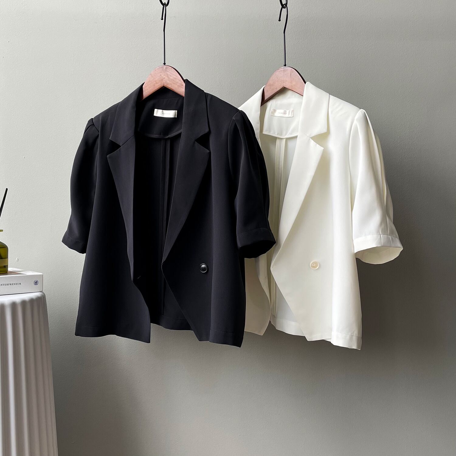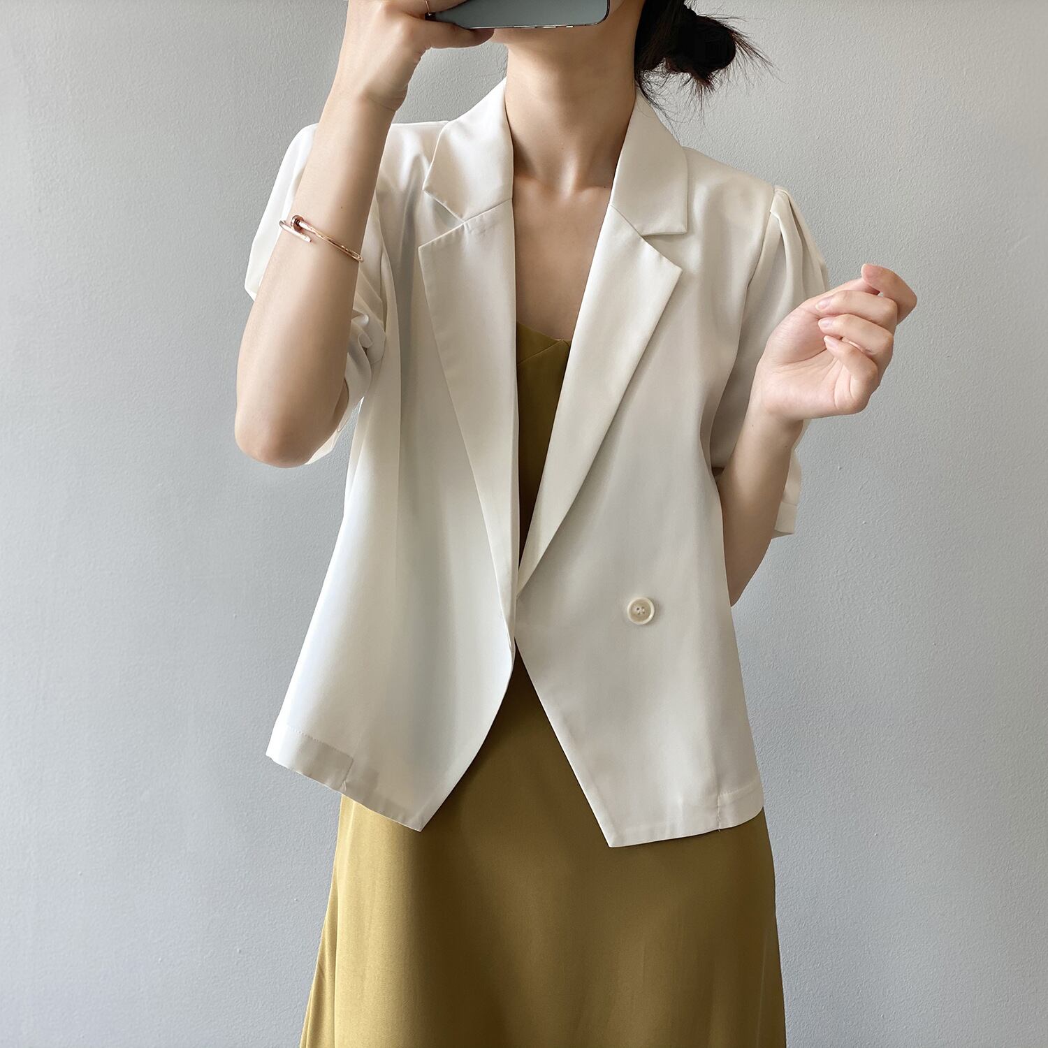 アウター レディース ジャケット 半袖 無地 春 夏 秋 かわいい 大人可愛い きれいめ シンプル カジュアル 大人 上品 おしゃれ かっこいい 大人女子 こなれ感 メンズライク ボーイッシュ ガーリー Vネック 襟付き 5分袖 ホワイト ブラック 大人カラー M L 10代 20代 30代 40代 50代 60代 オフィス ビジネス OL 通勤 学生 通学 デート お出かけ 女子会 休日 着回し 普段使い ファッション コーデ スタイル 体系カバー 送料無料 | Rena 韓国ファッション レディースアパレル