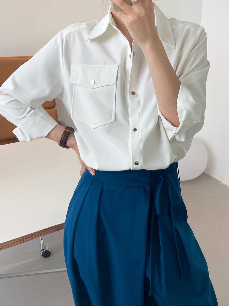 シャツ ブラウス 長袖 無地 春 夏 秋 冬 ストレート ワイド ポケット 前開き かわいい 大人可愛い きれいめ シンプル カジュアル 大人 上品 おしゃれ かっこいい 大人女子 こなれ感 ガーリー クール 袖あり ホワイト グレー 大人カラー M L 10代 20代 30代 40代 50代 60代 オフィス ビジネス OL 通勤 学生 通学 デート お出かけ 女子会 休日 オールシーズン 着回し 普段使い ファッション コーデ スタイル 体系カバー 送料無料 ゆったり | Rena 韓国ファッション レディースアパレル