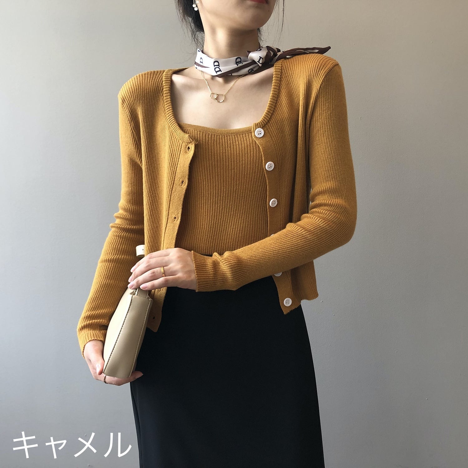 セットアップ カーディガン キャミソール 長袖 無地 春 秋 スリム 前開き 大人可愛い きれいめ シンプル 大人 上品 おしゃれ お洒落 大人可愛い 大人女子 こなれ感 抜け感 ラウンドネック 袖あり ニット 2点セット ツーピース 白 ホワイト 黒 ブラック 大人カラー キャメル アプリコット 20代 30代 40代 オフィス OL 通勤 学生 デート お出かけ 女子会 休日 普段使い ファッション コーデ スタイル モテ 送料無料 | Rena 韓国ファッション レディースアパレル