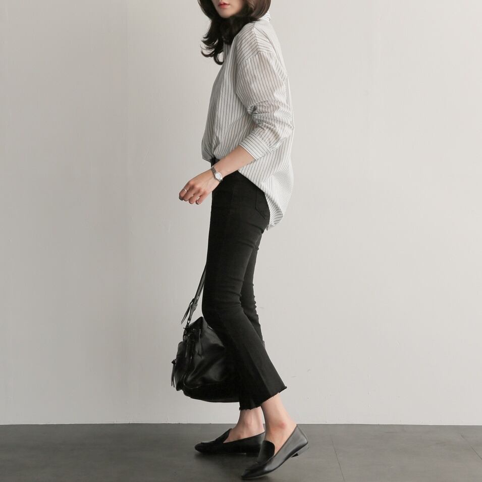 シャツ ロング丈 長袖 ストライプ 春 秋 大人可愛い きれいめ シンプル カジュアル 大人 上品 おしゃれ お洒落 かっこいい 大人女子 こなれ感 ラフ クール エレガント 主役級 存在感 ロング 袖あり 白 ホワイト ネイビー S M L XL 10代 20代 30代 40代 女性用 オフィス ビジネス OL 通勤 学生 通学 デート お出かけ 公園デビュー 女子会 休日 着回し 普段使い ファッション コーデ モテ 送料無料 | Rena 韓国ファッション レディースアパレル