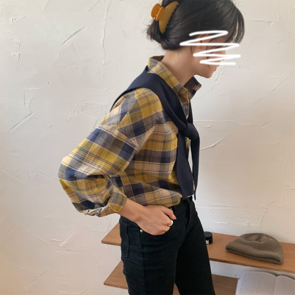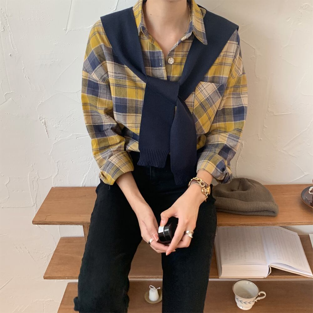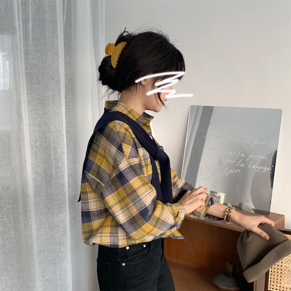 シャツ 長袖 チェック 秋 ポケット かわいい 大人可愛い きれいめ カジュアル 大人 上品 おしゃれ お洒落 かっこいい 大人女子 こなれ感 ラフ キュート ガーリー クール 主役級 存在感 袖あり 綿 青 ブルー 黄色 イエロー フリーサイズ 10代 20代 30代 女性用 学生 通学 デート お出かけ 公園デビュー 女子会 休日 着回し 普段使い ファッション コーデ モテ 送料無料 | Rena 韓国ファッション レディースアパレル
