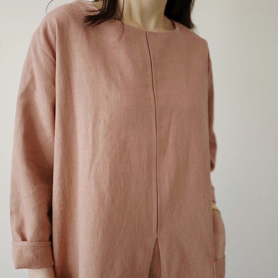 ゆったりとしたビッグシルエットのシンプルな長袖ワンピースです。