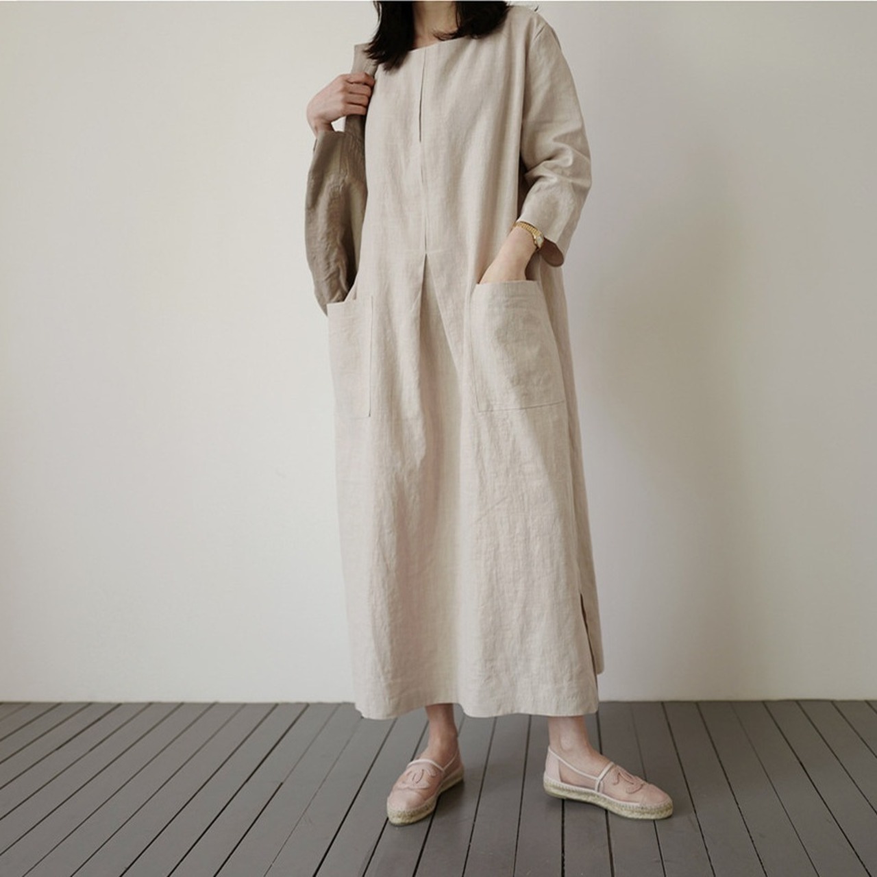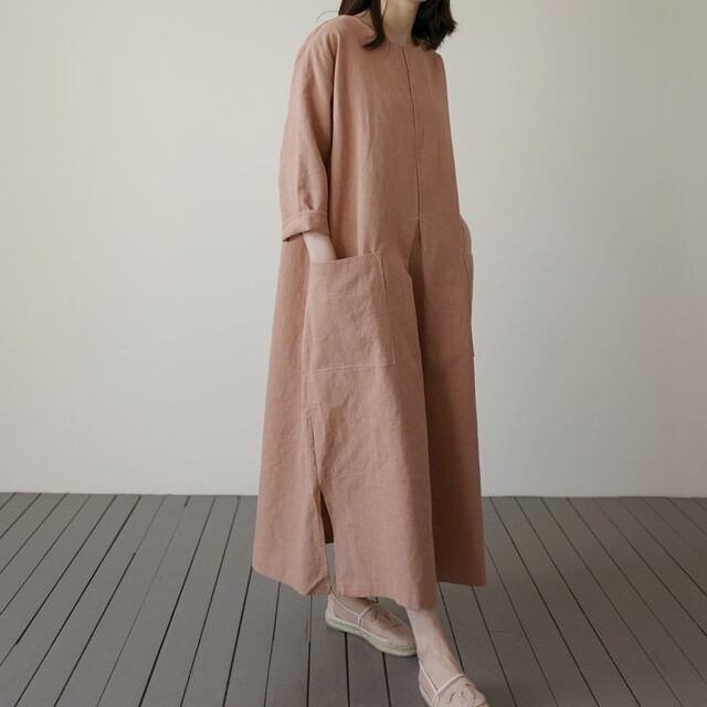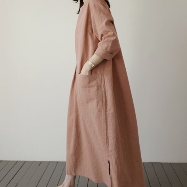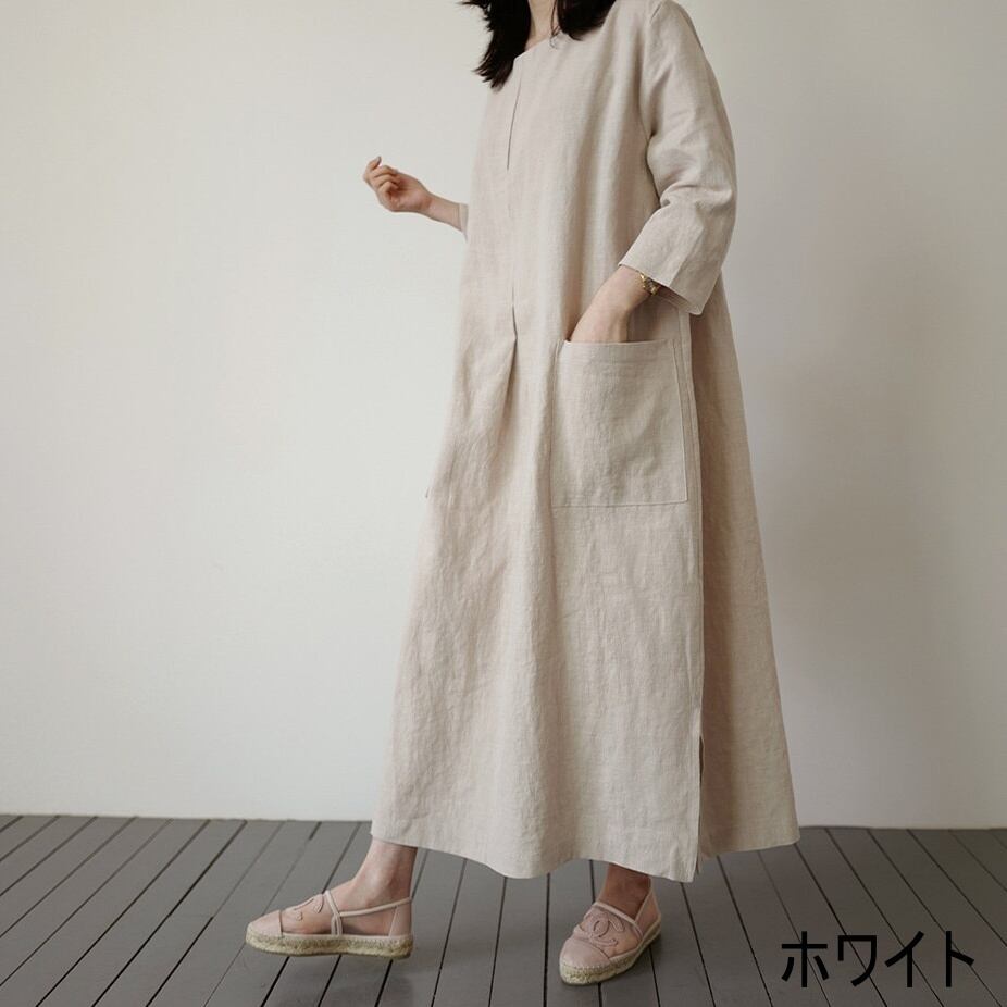 ワンピース ロング丈 長袖 無地 秋 スリット サイドスリット ポケット かわいい 大人可愛い きれいめ シンプル 大人 上品 おしゃれ お洒落 大人女子 こなれ感 ラフ 主役級 存在感 ロング 袖あり リネン 白 ホワイト 黒 ブラック オレンジ フリーサイズ ゆったり 10代 20代 30代 40代 女性用 学生 通学 デート お出かけ 公園デビュー 女子会 休日 着回し 普段使い ファッション コーデ モテ 送料無料 | Rena 韓国ファッション レディースアパレル