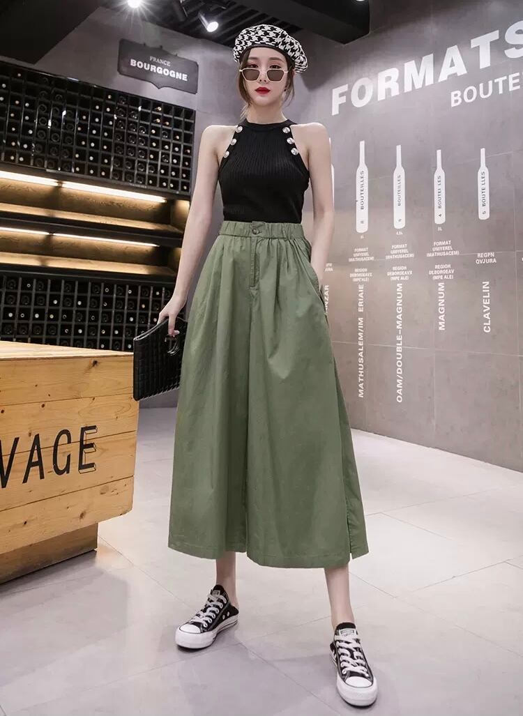 パンツ レディース ガウチョパンツ ロング丈 無地 春 夏 セミフレア スリット サイドスリット 大人可愛い シンプル カジュアル おしゃれ お洒落 こなれ感 ラフ キュート ルーズ モード系 ミモレ ロング ブラック ベージュ カーキ ネイビー フリーサイズ 10代 20代 30代 40代 50代 60代 女性用 オフィス ビジネス OL 通勤 デート お出かけ 公園デビュー 女子会 休日 着回し 普段使い ファッション コーデ スタイル 楽ちん | Rena 韓国ファッション レディースアパレル