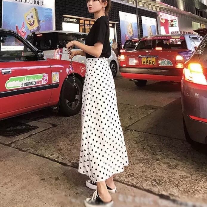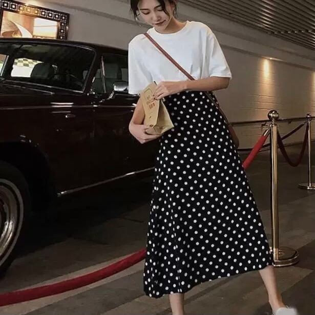 スカート ロングスカート Aラインスカート ミモレ丈 ドット 春 夏 秋 冬 スリム Aライン かわいい 大人可愛い カジュアル おしゃれ お洒落 レトロ こなれ感 ラブリー キュート ガーリー モード系 モダン 存在感 ミモレ ロング ホワイト ブラック レッド S M L XL 2XL 10代 20代 30代 女性用 デート お出かけ 女子会 休日 着回し 普段使い ファッション コーデ スタイル | Rena 韓国ファッション レディースアパレル