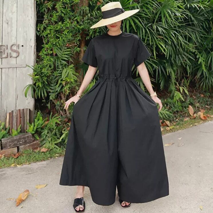 オールインワン ロング丈 半袖 無地 春 夏 セミフレア ワイド ウエストマーク ウエストリボン 大人可愛い きれいめ シンプル カジュアル おしゃれ お洒落 大人女子 こなれ感 ラフ ルーズ 抜け感 クルーネック ロング マキシ 袖あり ブラック ベージュ S M L XL 20代 30代 40代 50代 60代 女性用 デート お出かけ 公園デビュー 女子会 休日 着回し 普段使い ファッション コーデ スタイル 楽ちん 体系カバー ゆったり | Rena 韓国ファッション レディースアパレル