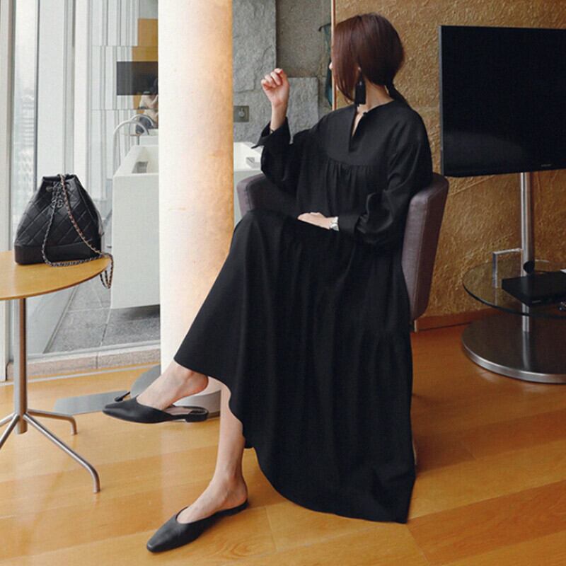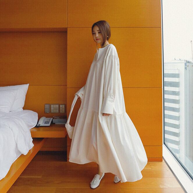 ワンピース シャツワンピース フレアワンピース マキシ丈 長袖 無地 春 秋 冬 フレア ティアード プリーツ かわいい 大人可愛い きれいめ シンプル カジュアル おしゃれ お洒落 大人女子 こなれ感 ラフ ラブリー キュート ガーリー ルーズ 個性的 抜け感 クルーネック ロング マキシ 袖あり 白シャツ ホワイト ブラック S M L XL 10代 20代 30代 40代 女性用 ママ マタニティ デート お出かけ 公園デビュー 女子会 休日 旅行 着回し 普段使い 楽ちん 体系カバー ゆったり | Rena 韓国ファッション レディースアパレル