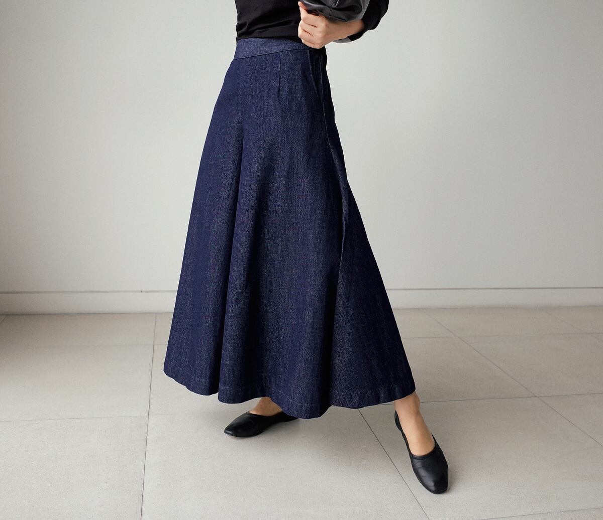 パンツ レディース ワイドパンツ マキシ丈 無地 春 夏 秋 冬 フレア ワイド ウエストゴム 大人可愛い きれいめ シンプル カジュアル おしゃれ お洒落 大人女子 こなれ感 ラフ キュート ルーズ クール ロング マキシ ブルーデニム ブルー S M L XL 10代 20代 30代 40代 50代 女性用 ママ お出かけ 公園デビュー 休日 アウトドア オールシーズン シーズンレス 着回し 普段使い ファッション コーデ スタイル 楽ちん | Rena 韓国ファッション レディースアパレル