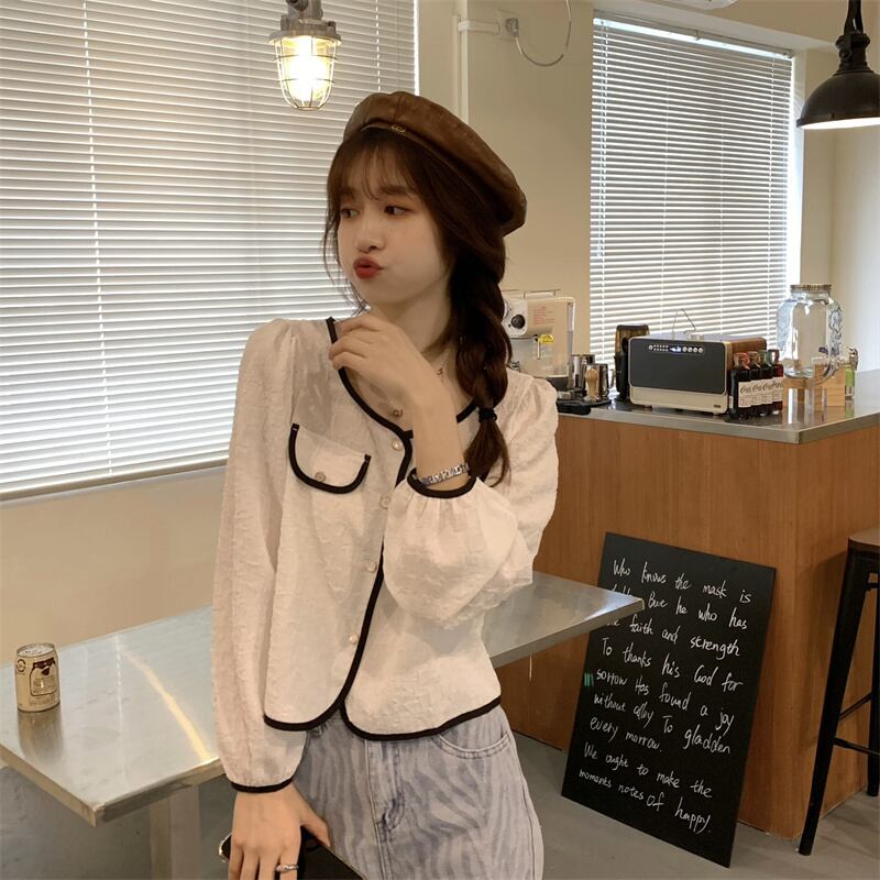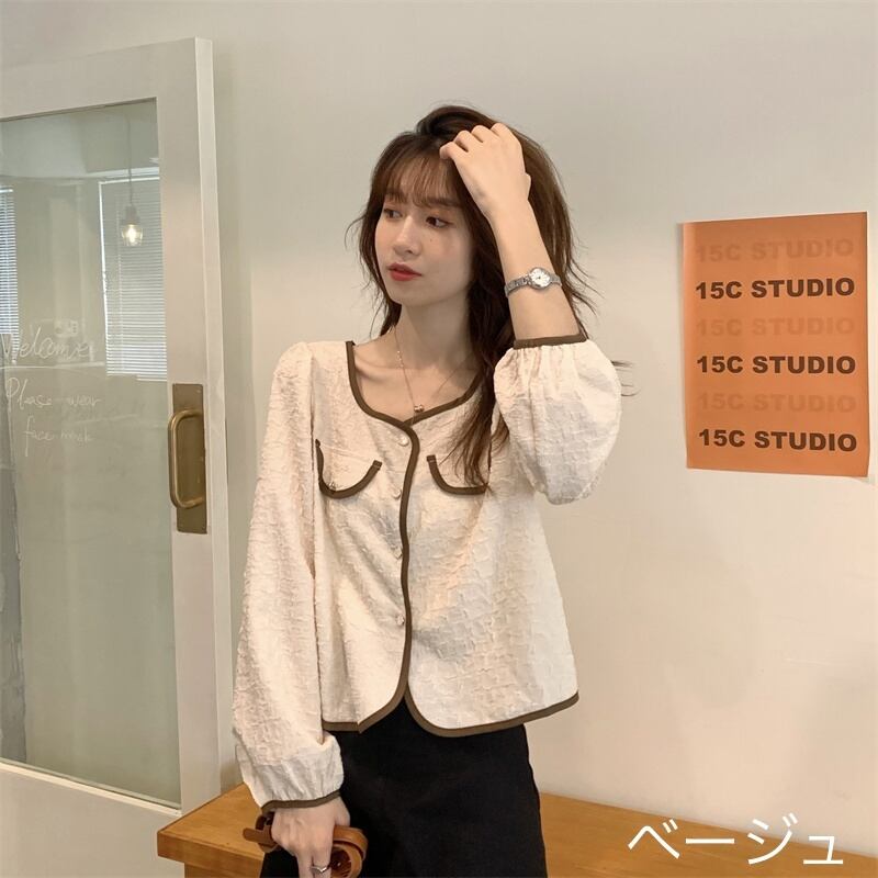アウター レディース シャツ ブラウス ショート丈 長袖 無地 春 秋 前開き 大人可愛い きれいめ 大人 上品 おしゃれ お洒落 大人可愛い 大人女子 こなれ感 ガーリー エレガント 抜け感 襟なし ショート 袖あり 白 ホワイト 黒 ブラック ベージュ 20代 30代 OL デート お出かけ 女子会 休日 ファッション コーデ スタイル モテ 送料無料 | Rena 韓国ファッション レディースアパレル