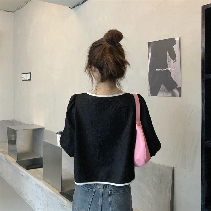 ゆったりとしたラウンドネックにかわいらしさをプラスしたパフスリーブのシンプルなブラウスです。