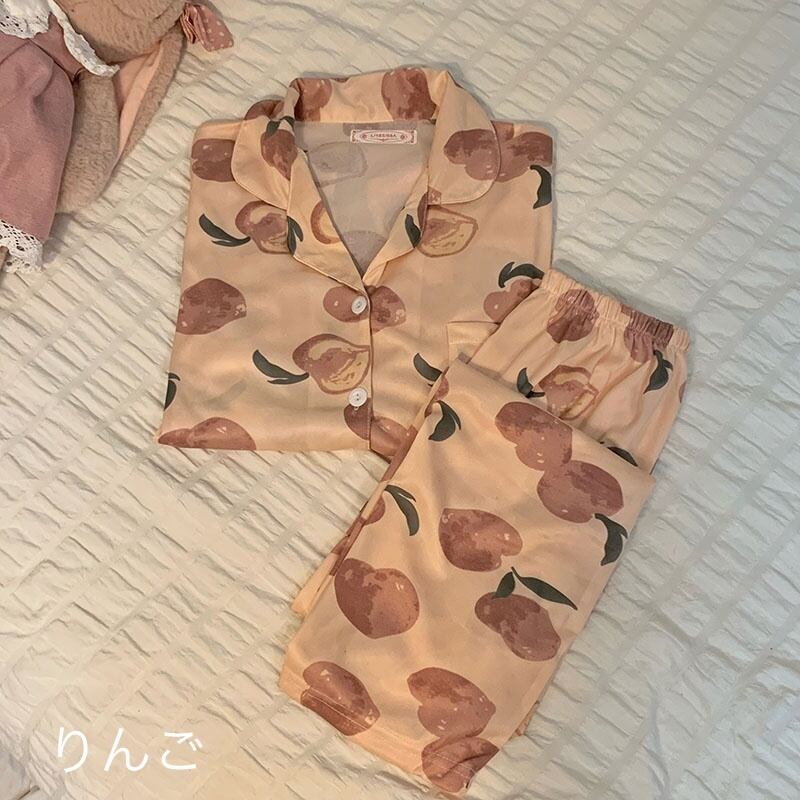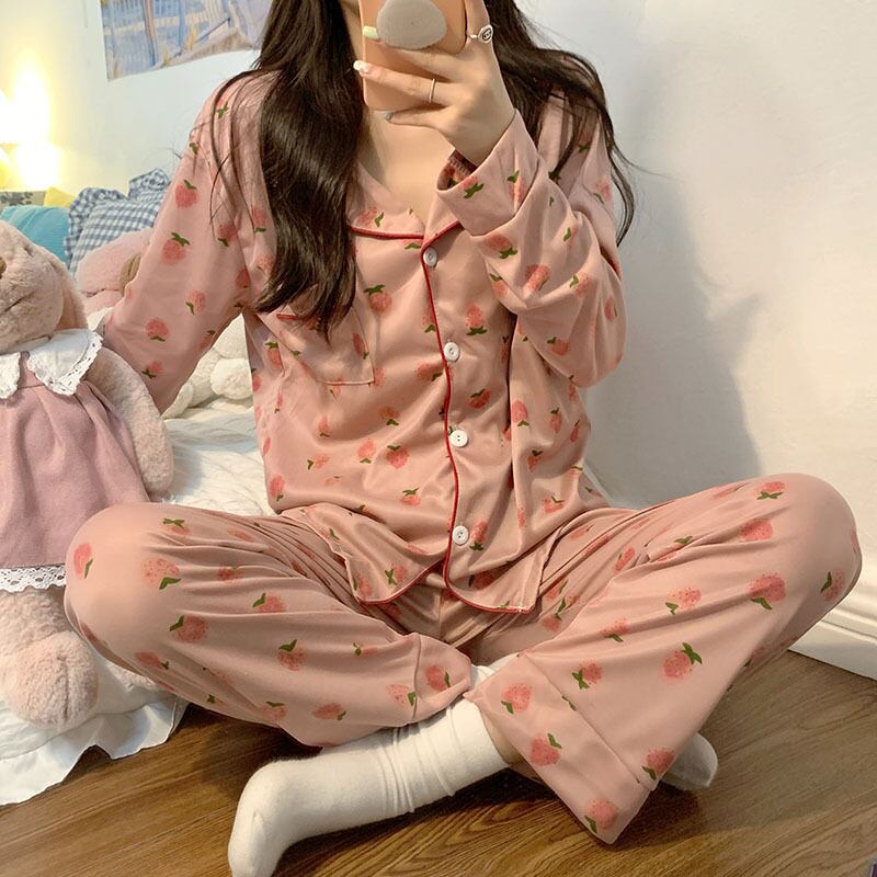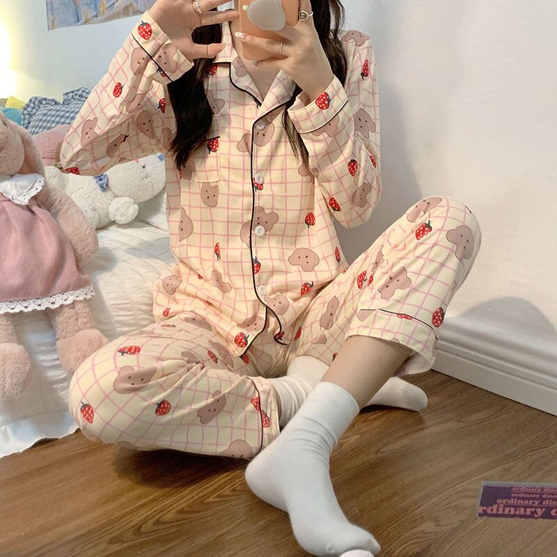 パジャマ レディース シャツ ロング丈 長袖 柄 春 秋 ストレート 前開き かわいい 大人可愛い カジュアル おしゃれ お洒落 ラフ ラブリー キュート ガーリー ルーズ 襟付き ロング 袖あり 部屋着 寝巻き ナイトウェア 上下セット 2点セット M L XL 2XL 10代 20代 30代 女性用 お泊まり 休日 ファッション スタイル 楽ちん モテ 送料無料 インスタ映え | Rena 韓国ファッション レディースアパレル