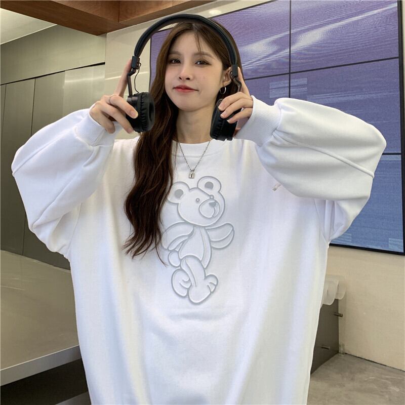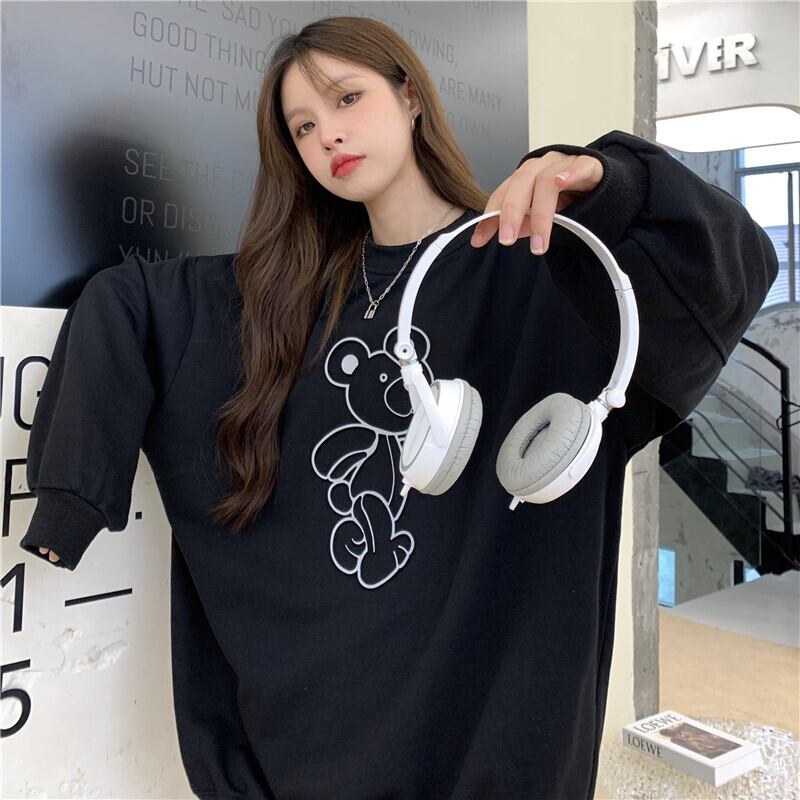 トレーナー 長袖 柄 秋 冬 ストレート Iライン 伸縮性 かわいい 大人可愛い きれいめ シンプル カジュアル 大人 おしゃれ お洒落 かっこいい レトロ 大人可愛い 大人女子 ラフ スポーティー キュート 個性的 Uネック 袖あり 白 ホワイト 黒 ブラック 灰色 グレー M L XL ゆったり 20代 30代 学生 通学 デート お出かけ 公園デビュー 女子会 着回し 普段使い 韓国 韓国系 オルチャン ファッション コーデ スタイル 楽ちん あったか モテ 体系カバー 送料無料 トレンド 流行 | Rena 韓国ファッション レディースアパレル