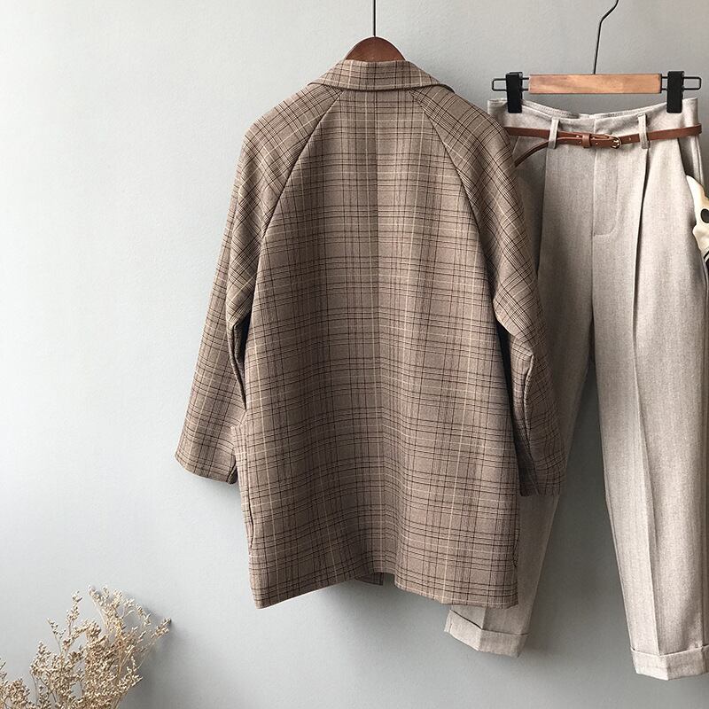セットアップ ストレートパンツ ジャケット 長袖 柄 チェック 秋 冬 スリム 細身 ストレート Iライン 前開き かわいい 大人可愛い きれいめ シンプル カジュアル 大人 上品 おしゃれ お洒落 かっこいい レトロ 大人可愛い 大人女子 こなれ感 フォーマル Vネック 襟付き ロング 袖あり 2点セット M L 20代 30代 オフィス ビジネス OL 通勤 学生 通学 デート 着回し 普段使い 重ね着 韓国 韓国系 オルチャン ファッション 新作 送料無料 トレンド 流行 インスタ映え | Rena 韓国ファッション レディースアパレル