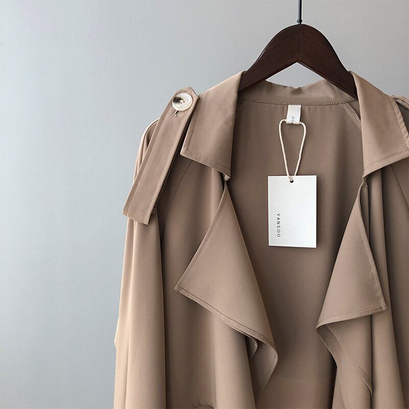 ボタンを使わないラップコートがひざ下まであるロング丈で登場。