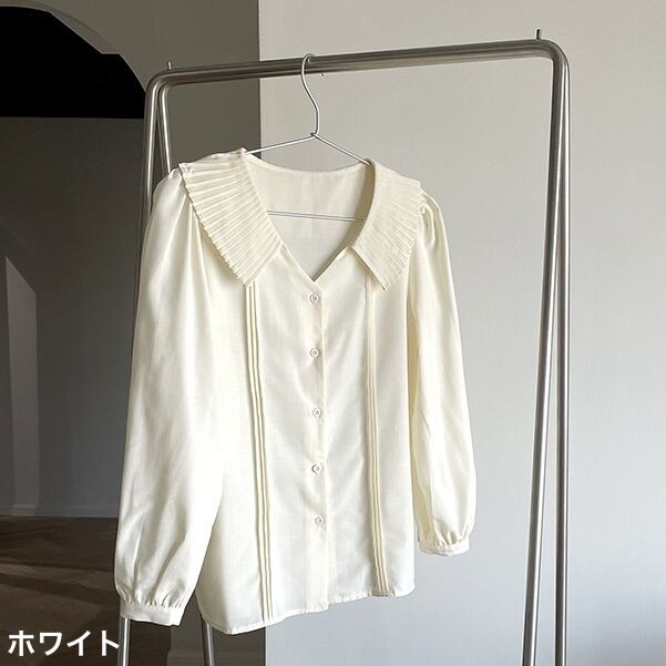この秋トレンドの大きめの襟が特徴の長袖シャツです。