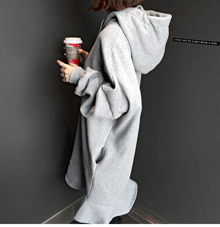 パーカー ワンピース 膝丈 膝上 長袖 無地 秋 冬 かわいい 大人可愛い カジュアル おしゃれ お洒落 メンズライク ラブリー キュート ガーリー ルーズ 袖あり 黒 ブラック 灰色 グレー S M L XL 10代 20代 30代 デート お出かけ 女子会 お泊まり 休日 旅行 ファッション コーデ 楽ちん あったか 暖かい モテ 送料無料 | Rena 韓国ファッション レディースアパレル