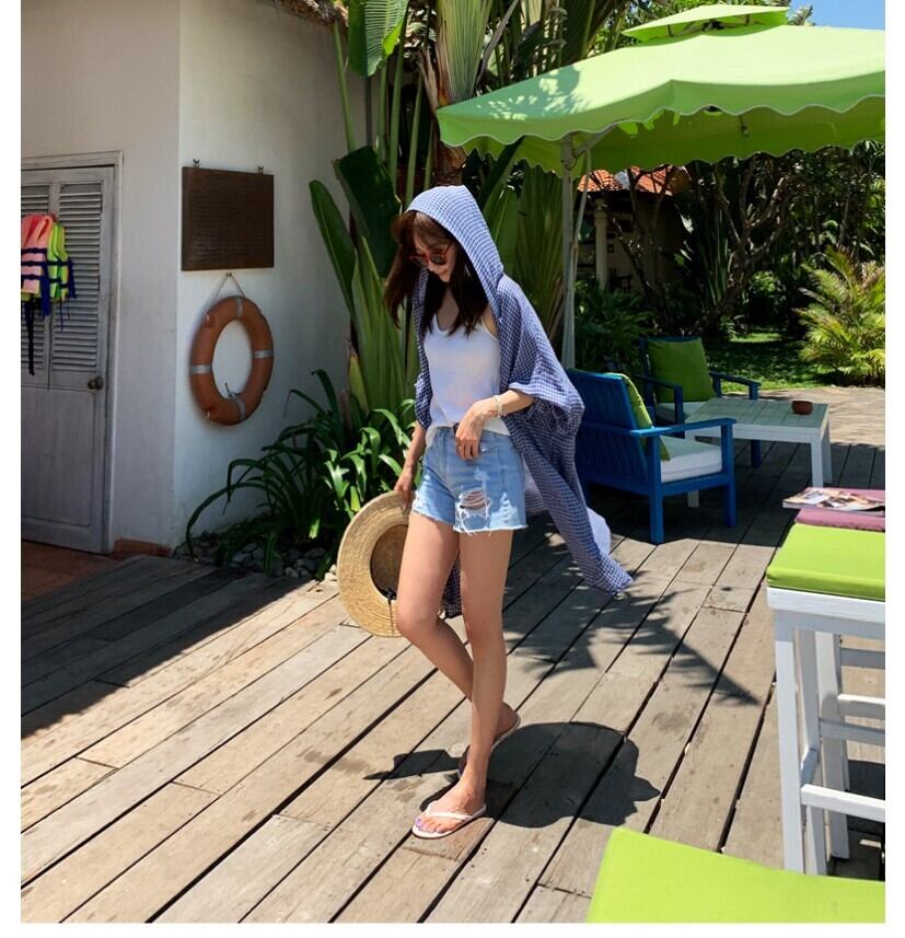 アウター レディース ジャケット 膝丈 長袖 チェック 春 夏 フード付き かわいい シンプル カジュアル おしゃれ お洒落 こなれ感 ラフ 袖あり 黒 ブラック 青 ブルー S M L XL 10代 20代 30代 デート お出かけ 公園デビュー 女子会 休日 アウトドア リゾート 旅行 海 ファッション コーデ スタイル 楽ちん 送料無料 | Rena 韓国ファッション レディースアパレル