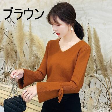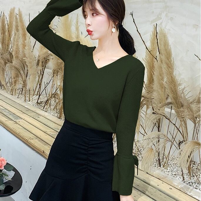セーター 長袖 無地 秋 冬 かわいい 大人可愛い きれいめ シンプル おしゃれ お洒落 大人可愛い 大人女子 キュート Vネック 袖あり 黒 ブラック 赤 レッド 青 ブルー 緑 グリーン 茶色 ブラウン 黄色 イエロー S M L XL 10代 20代 30代 デート お出かけ 女子会 休日 ファッション コーデ あったか 暖かい 送料無料 | Rena 韓国ファッション レディースアパレル