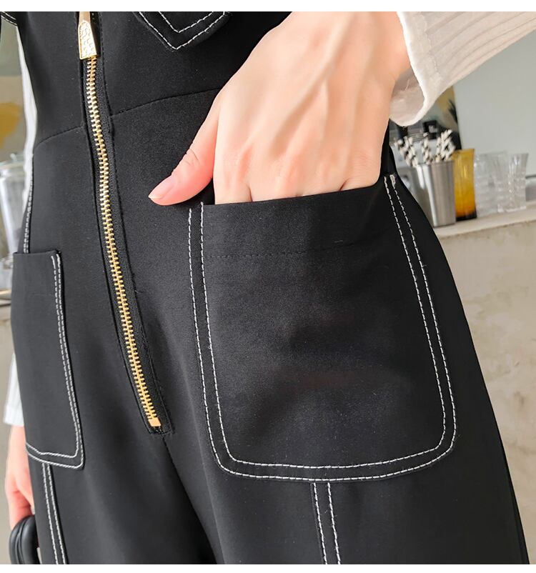 パンツ レディース ワイドパンツ ロング丈 アンクル丈 ノースリーブ ストライプ 春 秋 ワイド かわいい 大人可愛い カジュアル おしゃれ お洒落 大人可愛い 大人女子 こなれ感 メンズライク キュート ガーリー 黒 ブラック 茶色 ブラウン S M L XL 10代 20代 30代 デート お出かけ 公園デビュー 女子会 お泊まり 休日 アウトドア ファッション コーデ スタイル 送料無料 | Rena 韓国ファッション レディースアパレル