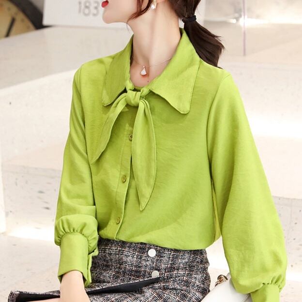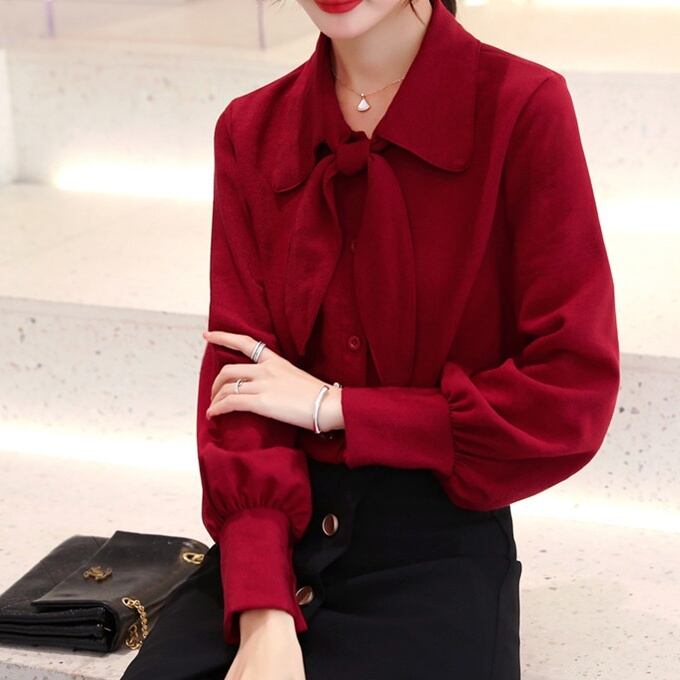 シャツ 長袖 無地 秋 リボン かわいい 大人可愛い きれいめ 大人 上品 おしゃれ お洒落 大人女子 キュート エレガント 主役級 存在感 袖あり 白 ホワイト 赤 レッド 緑 グリーン S M L XL 2XL 10代 20代 30代 女性用 オフィス ビジネス OL 通勤 学生 通学 デート お出かけ 公園デビュー 女子会 休日 着回し 普段使い ファッション コーデ モテ 送料無料 | Rena 韓国ファッション レディースアパレル