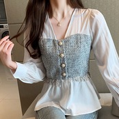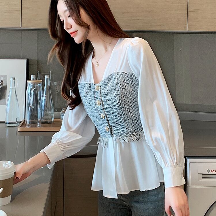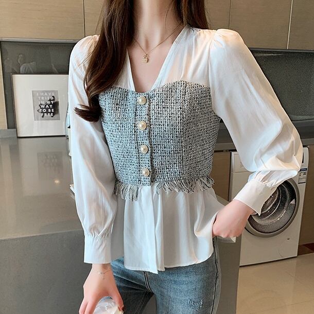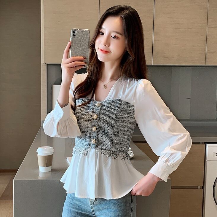 シャツ 長袖 秋 シフォン フリル かわいい 大人可愛い きれいめ カジュアル 大人 上品 おしゃれ お洒落 大人女子 ガーリー エレガント 主役級 存在感 Vネック 袖あり S M L XL 2XL 10代 20代 30代 女性用 オフィス ビジネス OL 通勤 学生 通学 デート お出かけ 公園デビュー 女子会 休日 着回し 普段使い ファッション コーデ モテ 送料無料 | Rena 韓国ファッション レディースアパレル
