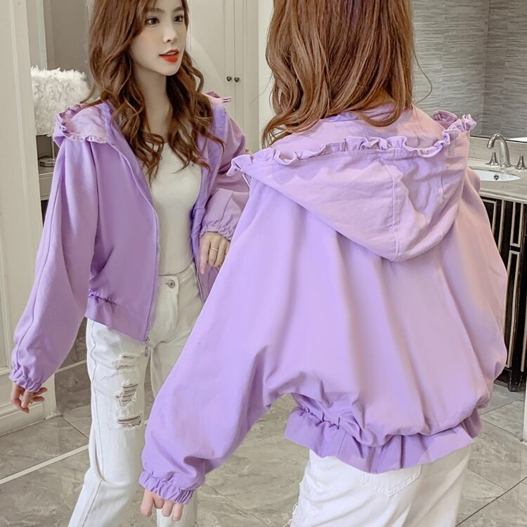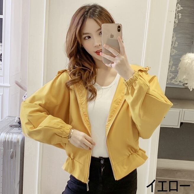 アウター レディース ジャケット ショート丈 長袖 秋 冬 フリル フード付き ファスナー かわいい 大人可愛い きれいめ シンプル カジュアル 大人 上品 おしゃれ お洒落 大人女子 ラフ キュート エレガント 主役級 存在感 ショート 袖あり 白 ホワイト 紫 パープル イエロー S M L XL 10代 20代 30代 女性用 ママ 学生 通学 デート お出かけ 公園デビュー 女子会 休日 着回し 普段使い ファッション コーデ モテ 送料無料 | Rena 韓国ファッション レディースアパレル