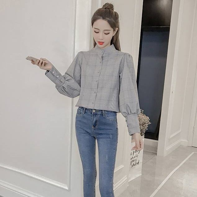 シャツ 長袖 チェック 春 秋 リボン バックリボン かわいい 大人可愛い きれいめ シンプル カジュアル 大人 上品 おしゃれ お洒落 大人女子 キュート ガーリー エレガント 主役級 存在感 袖あり 茶色 ブラウン 灰色 グレー S M L XL 10代 20代 30代 ママ 通勤 学生 通学 デート お出かけ 公園デビュー 女子会 休日 着回し 普段使い ファッション コーデ モテ 送料無料 インスタ映え | Rena 韓国ファッション レディースアパレル