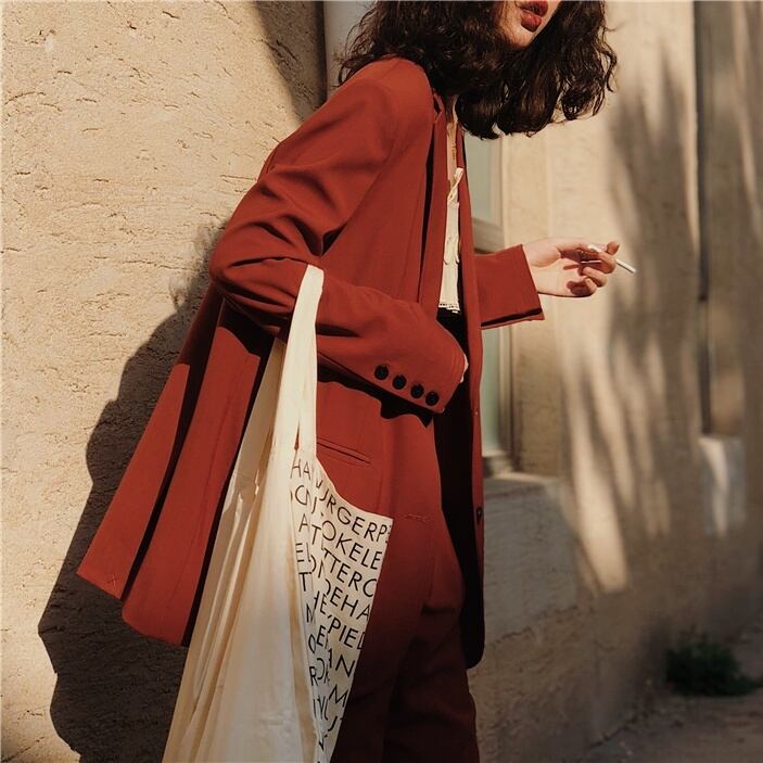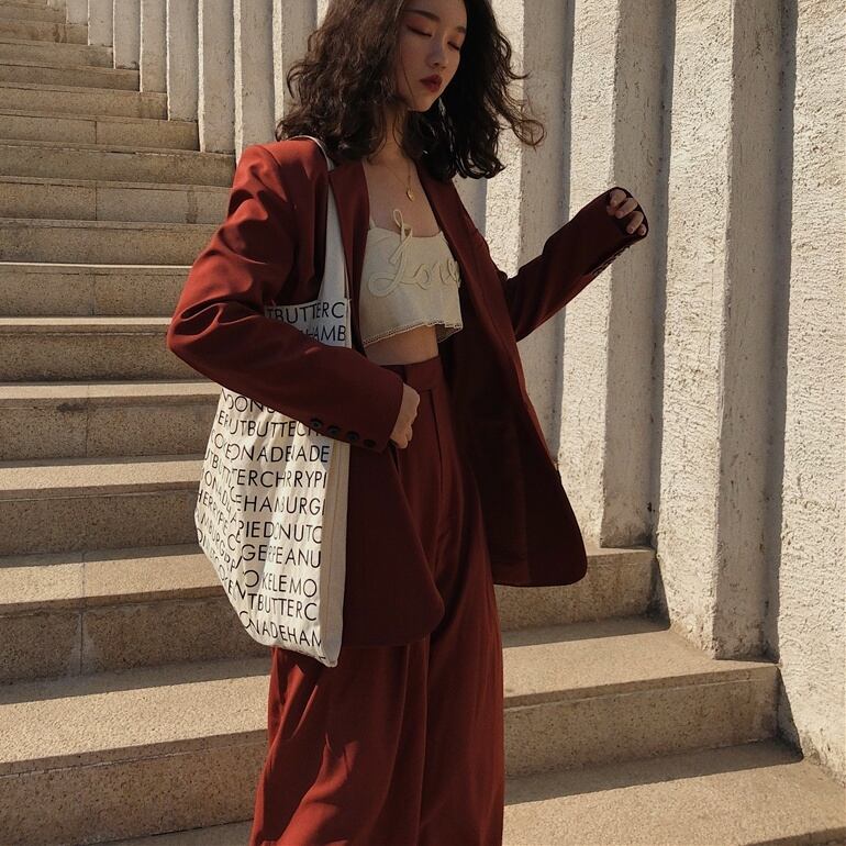 パンツスーツ ストレートパンツ ロング丈 長袖 無地 春 大人可愛い きれいめ シンプル カジュアル 大人 上品 おしゃれ お洒落 かっこいい 大人女子 クール 主役級 存在感 ロング 袖あり 上下セット ツーピース 赤 レッド S M L 10代 20代 30代 40代 女性用 オフィス ビジネス OL 通勤 普段使い ファッション コーデ 送料無料 | Rena 韓国ファッション レディースアパレル