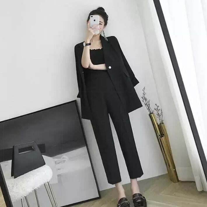 パンツスーツ ストレートパンツ ジャケット 七分丈 長袖 無地 春 ベルト かわいい 大人可愛い きれいめ シンプル カジュアル 大人 上品 おしゃれ お洒落 かっこいい 大人女子 クール 主役級 存在感 7分丈 袖あり 上下セット ツーピース 黒 ブラック ベージュ S M L XL 10代 20代 30代 40代 女性用 オフィス ビジネス OL 通勤 入学式 入園式 卒業式 卒園式 普段使い ファッション コーデ 送料無料 | Rena 韓国ファッション レディースアパレル