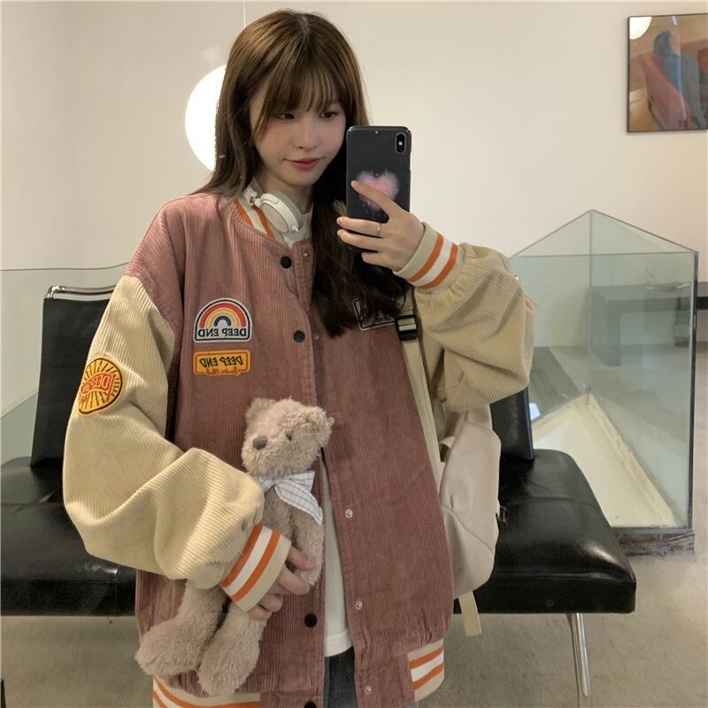 ゆったりとしたオーバーサイズが可愛い、レトロな雰囲気のユニフォーム風ジャケットです。