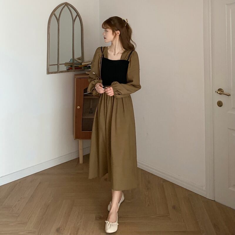 ワンピース Aラインワンピース ミディアム丈 長袖 無地 秋 フレア Aライン かわいい 大人可愛い きれいめ シンプル 大人 上品 おしゃれ お洒落 レトロ 大人女子 キュート ガーリー 主役級 存在感 スクエアネック ロング 袖あり ブラウン 灰色 ベージュ フリーサイズ 10代 20代 30代 学生 通学 デート お出かけ 公園デビュー 女子会 休日 着回し 普段使い ファッション コーデ モテ 送料無料 | Rena 韓国ファッション レディースアパレル