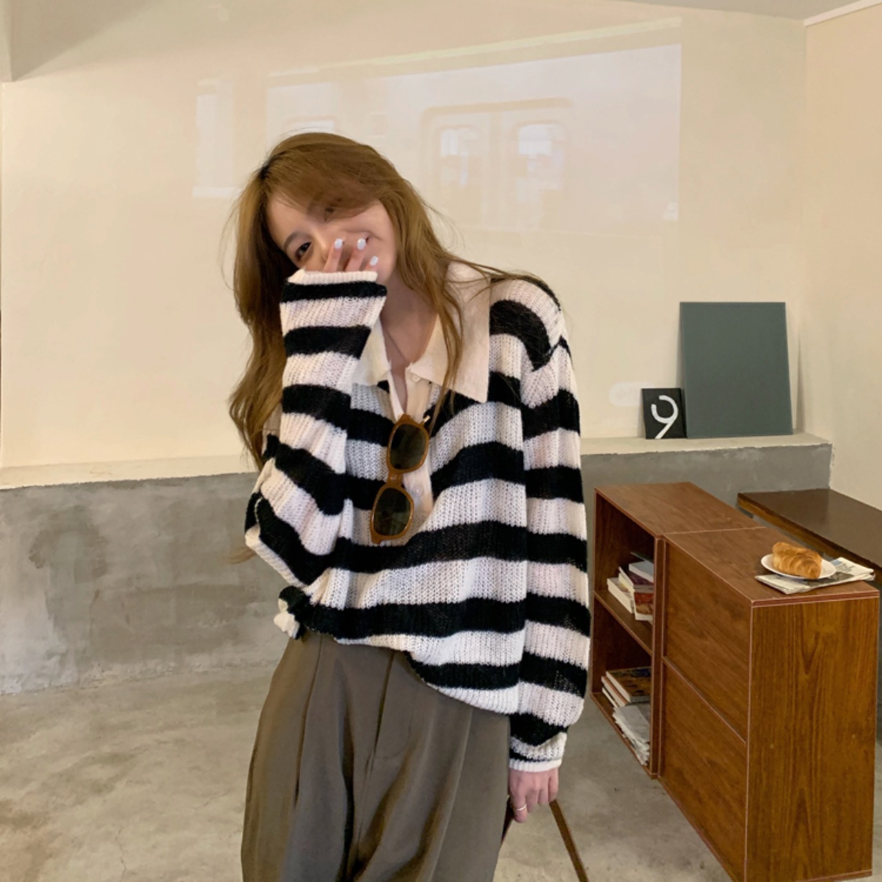 ゆったりとしたルーズシルエットのストライプセーターです。