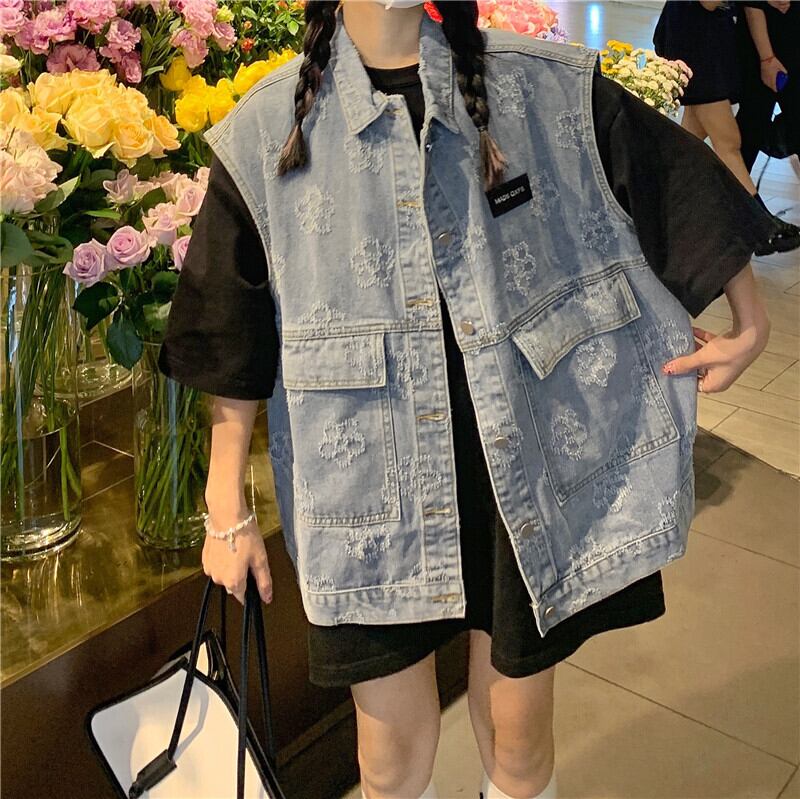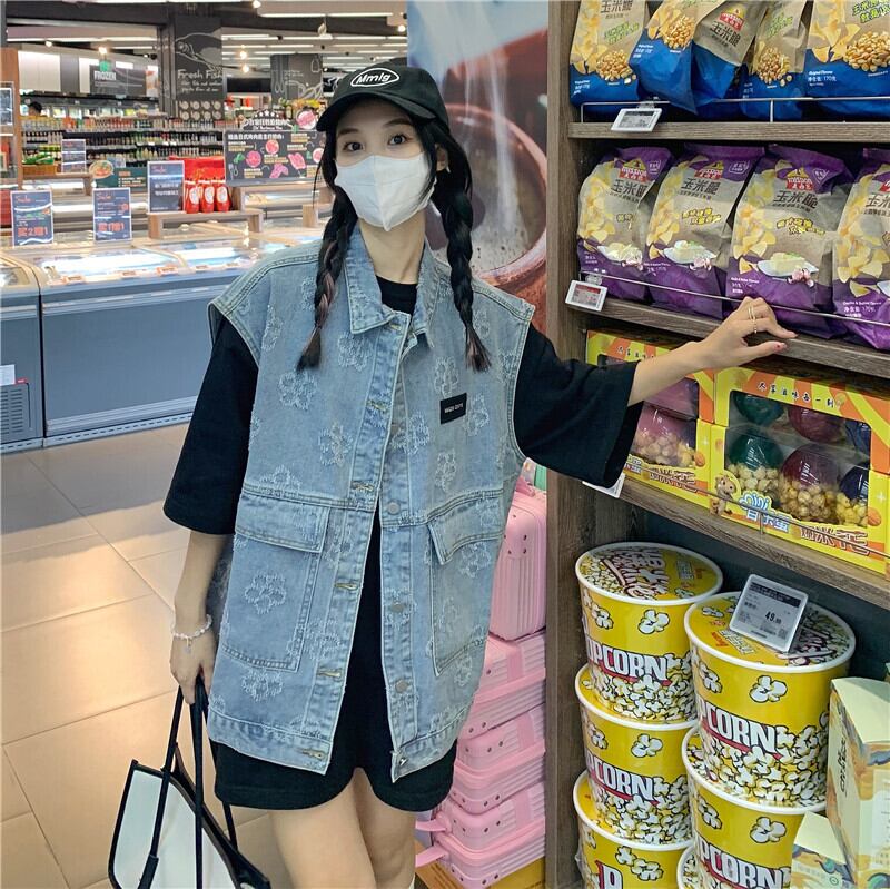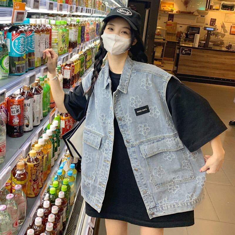 アウター レディース ベスト ジャケット ノースリーブ 花柄 小花柄 フラワー デニム 秋 かわいい 大人可愛い シンプル カジュアル 大人 上品 おしゃれ お洒落 かっこいい キュート ガーリー 個性的 クール 主役級 存在感 袖なし フリーサイズ 10代 20代 30代 ママ 学生 通学 デート お出かけ 公園デビュー 女子会 休日 着回し 普段使い ファッション コーデ モテ 送料無料 | Rena 韓国ファッション レディースアパレル