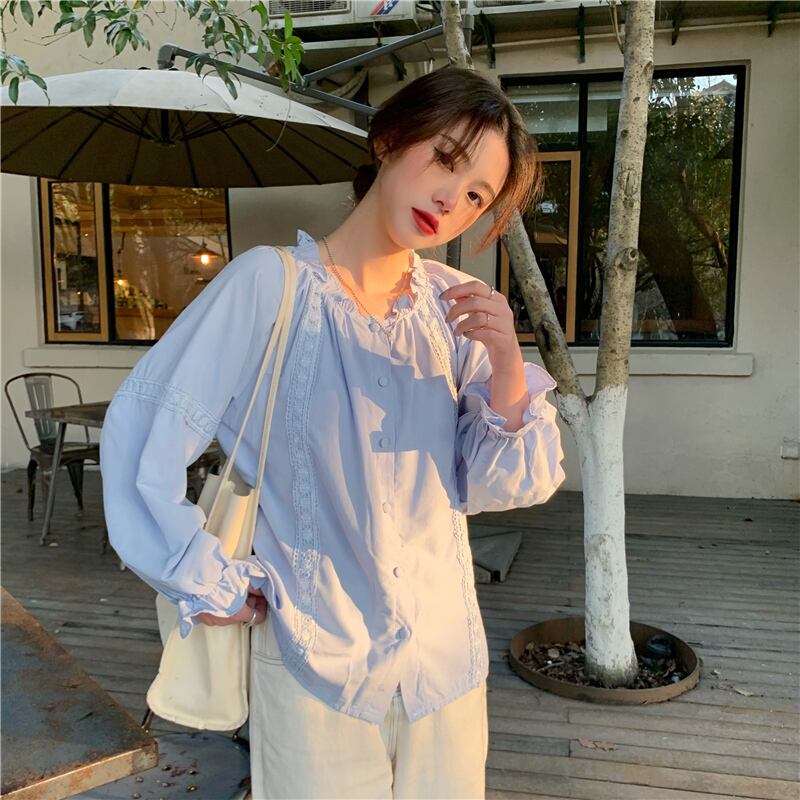 ブラウス 長袖 刺繍 春 秋 ストレート フリル 前開き かわいい 大人可愛い きれいめ シンプル カジュアル 大人 上品 おしゃれ レトロ アジアン 大人女子 こなれ感 ラブリー キュート ガーリー ラウンドネック 襟付き 袖あり 萌袖 ホワイト イエロー 水色 大人カラー 春カラー 秋カラー フリーサイズ 10代 20代 30代 40代 50代 OL 通勤 学生 通学 デート お出かけ 女子会 休日 旅行 海 着回し 普段使い ファッション コーデ スタイル モテ 送料無料