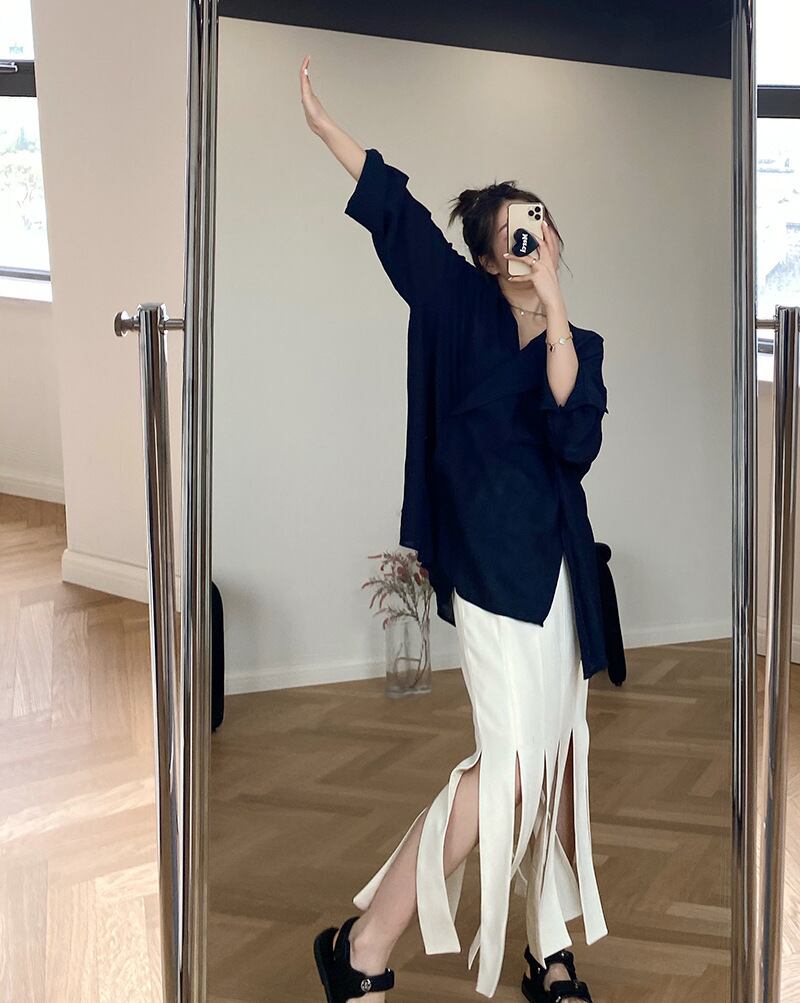 シャツ 長袖 無地 春 秋 ストレート 前開き きれいめ シンプル 大人 上品 おしゃれ お洒落 大人女子 こなれ感 ラフ ルーズ 個性的 主役級 抜け感 襟付き 袖あり ボリューム袖 黒 ブラック 黄色 イエロー S M 20代 30代 OL デート お出かけ 女子会 イベント ファッション コーデ スタイル 送料無料