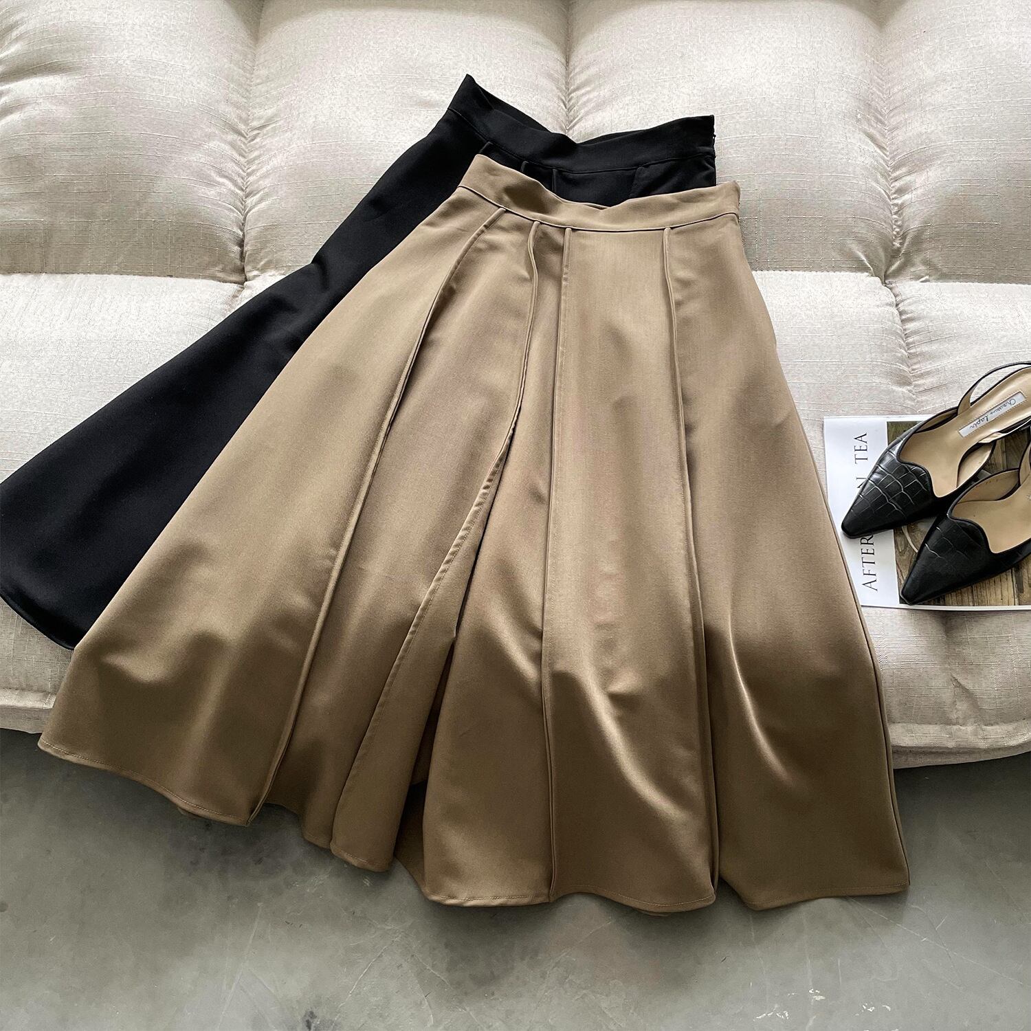 スカート レディース フレアワンピース Aラインワンピース ミモレ丈 無地 秋 冬 スリム Aライン 裾フレア 大人可愛い きれいめ シンプル カジュアル 大人 上品 おしゃれ お洒落 レトロ 個性的 存在感 フォーマル ミモレ 黒 ブラック 茶色 ブラウン M L 20代 30代 女性用 オフィス ビジネス OL 通勤 学生 通学 デート お出かけ 女子会 着回し 普段使い 重ね着 韓国 韓国系 オルチャン ファッション コーデ スタイル 楽ちん 送料無料 トレンド 流行 インスタ映え | Rena 韓国ファッション レディースアパレル