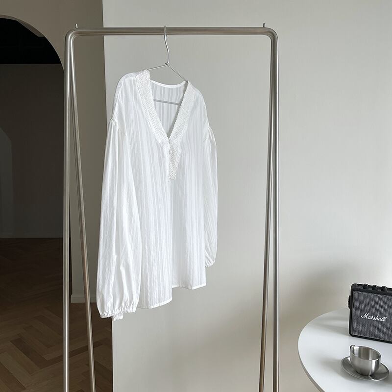 ブラウス 長袖 無地 春 秋 スリム ストレート かわいい 大人可愛い きれいめ シンプル カジュアル 大人 上品 おしゃれ お洒落 レトロ 大人可愛い 大人女子 ガーリー 個性的 Vネック 袖あり 白 ホワイト S M 20代 30代 女の子 オフィス ビジネス OL 通勤 学生 通学 デート お出かけ 公園デビュー 女子会 休日 イベント 着回し 普段使い 韓国 韓国系 オルチャン ファッション コーデ スタイル モテ 新作 定番 送料無料 トレンド 流行 インスタ映え | Rena 韓国ファッション レディースアパレル