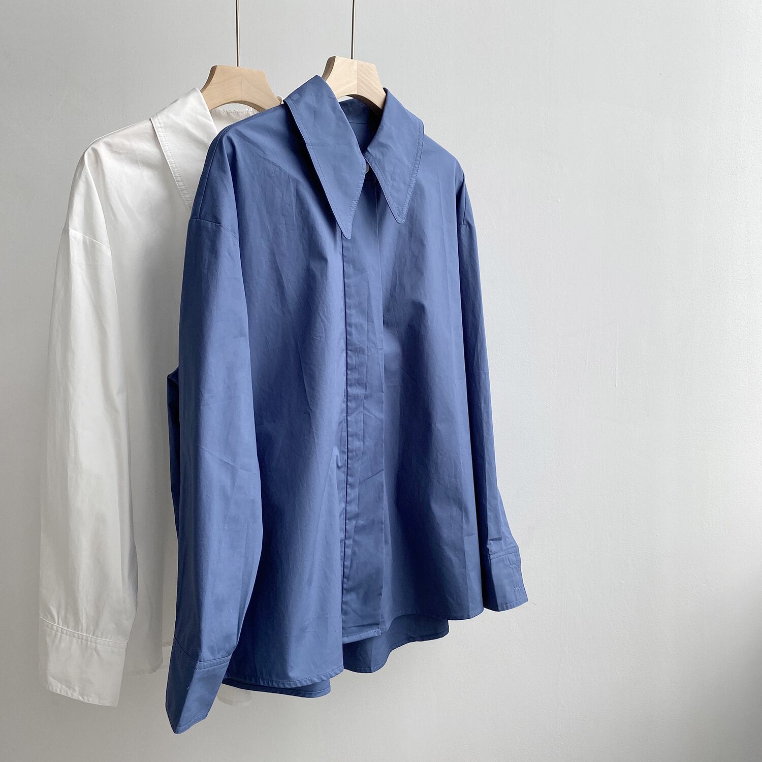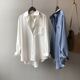 シャツ 長袖 無地 春 秋 スリム ストレート 伸縮性 かわいい 大人可愛い きれいめ シンプル カジュアル 大人 上品 おしゃれ お洒落 かっこいい レトロ 大人可愛い 大人女子 こなれ感 個性的 Vネック 袖あり 白 ホワイト 青 ブルー くすみカラー 大人カラー M L 20代 30代 40代 女の子 オフィス ビジネス OL 通勤 学生 通学 デート お出かけ 女子会 休日 着回し 普段使い 重ね着 お揃い 韓国 韓国系 オルチャン ファッション コーデ スタイル 送料無料 トレンド 流行 | Rena 韓国ファッション レディースアパレル