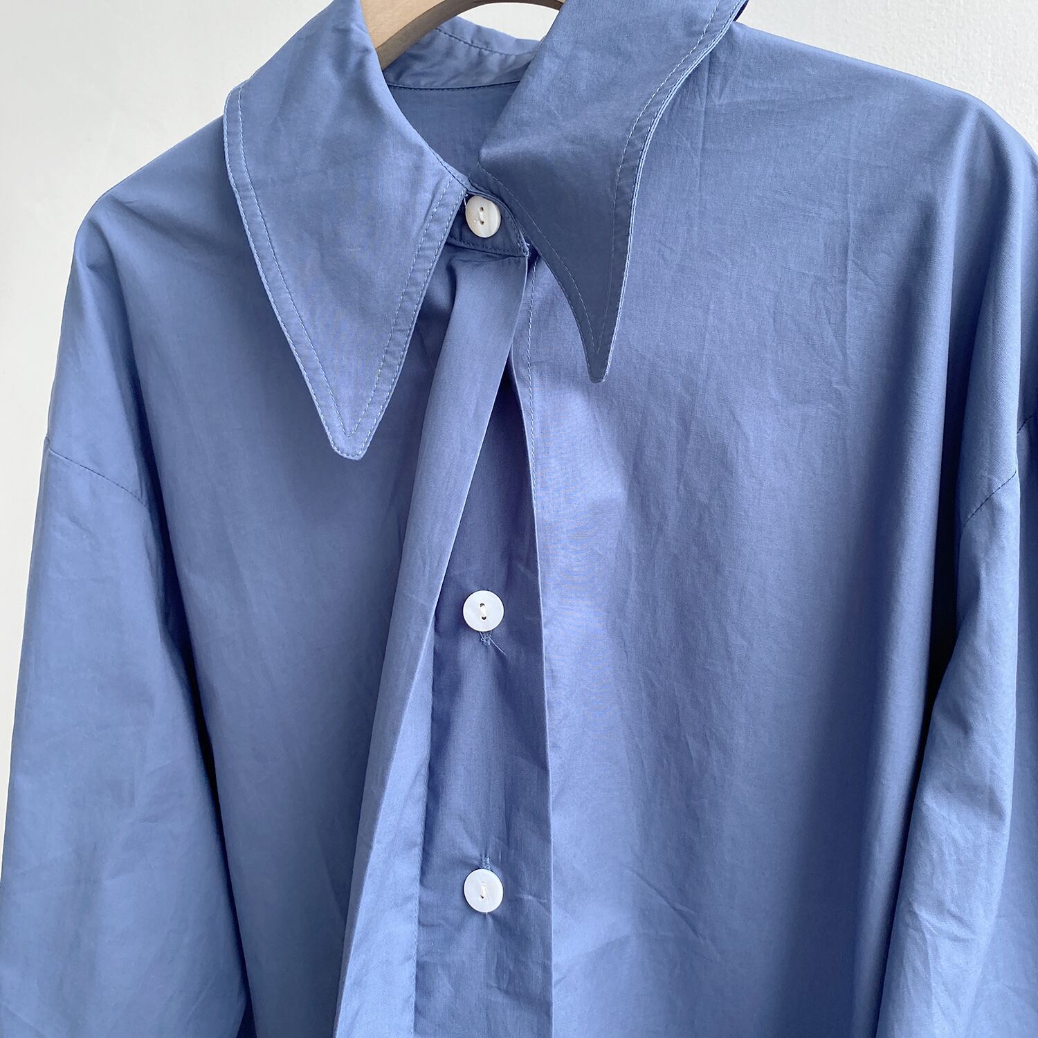 比翼仕立て(フライフロント)で前からボタンが見えない大人なデザイン。